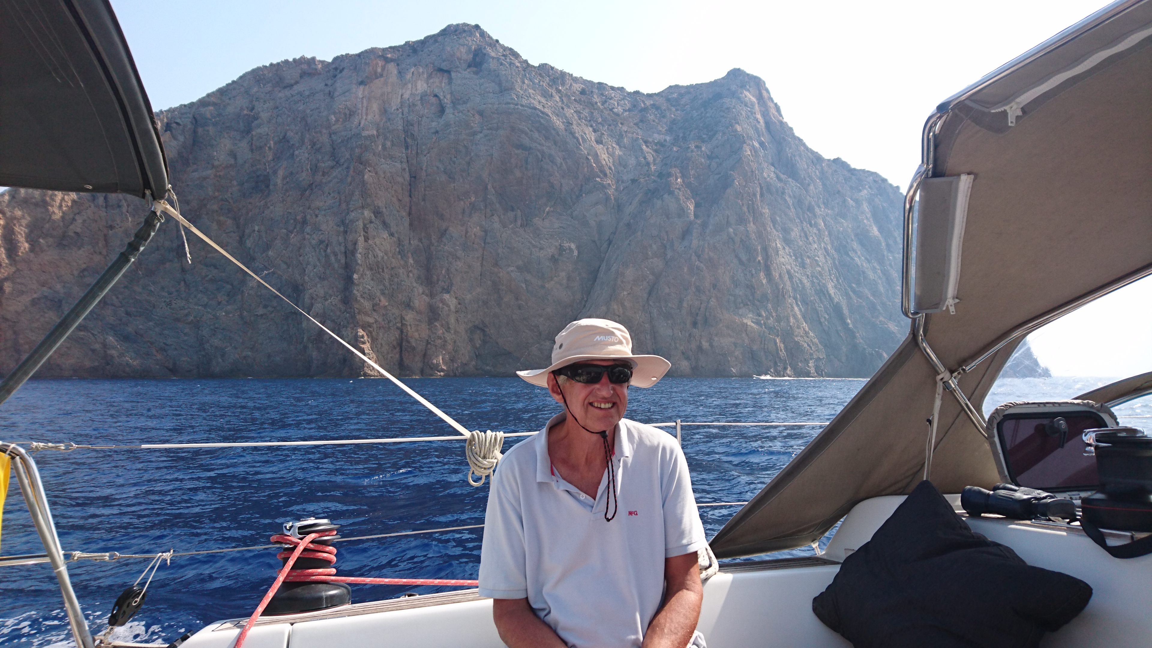 Dit wordt de beste zeildag tot nu toe, heerlijk ruime wind met best lange golven voor Mediterrane begrippen. Zie het onderstaande filmpje