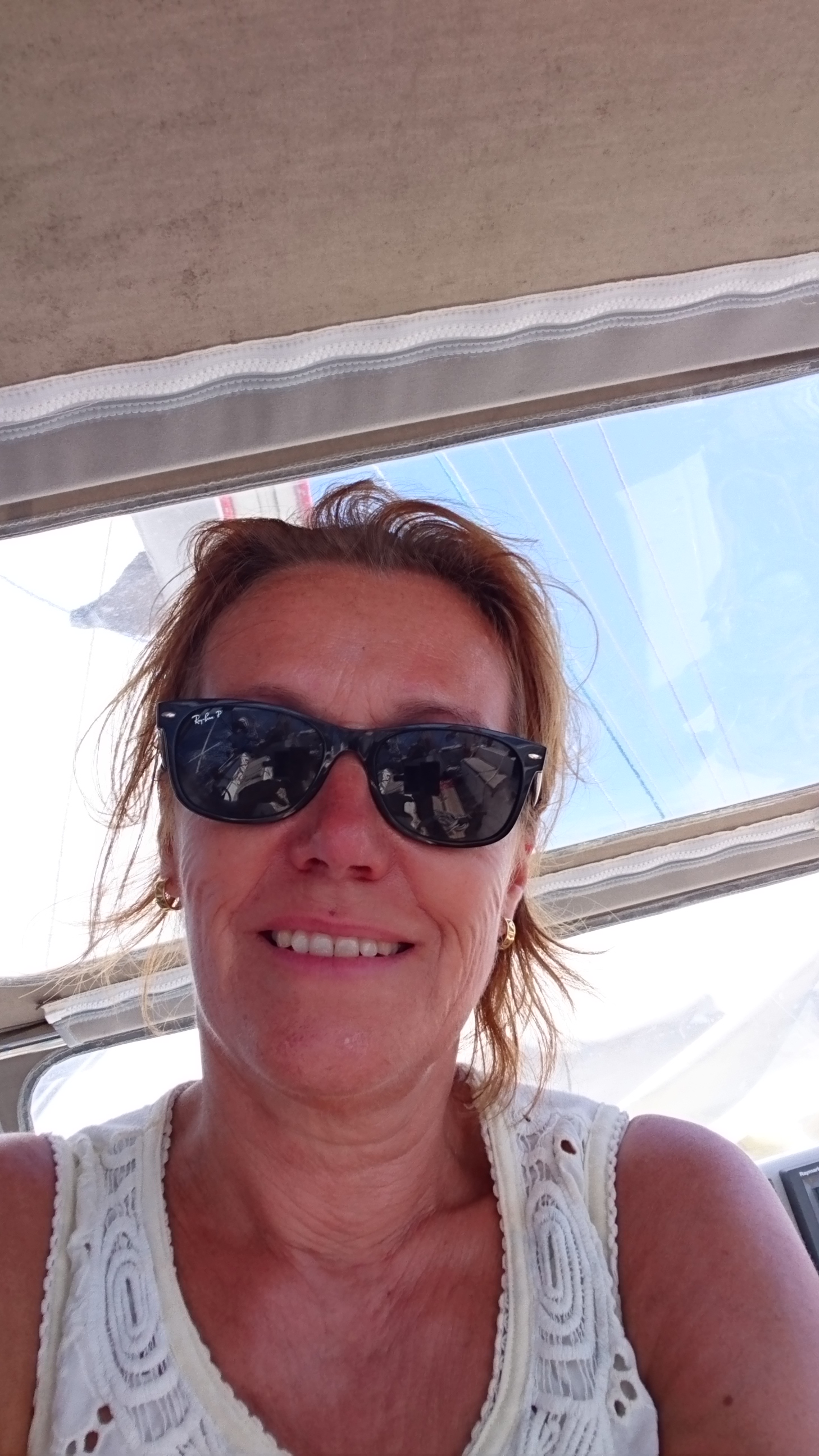 We draaien alle kanten op door de steeds draaiende, maar heel lichte wind. Gelukkig blijft het anker goed liggen.