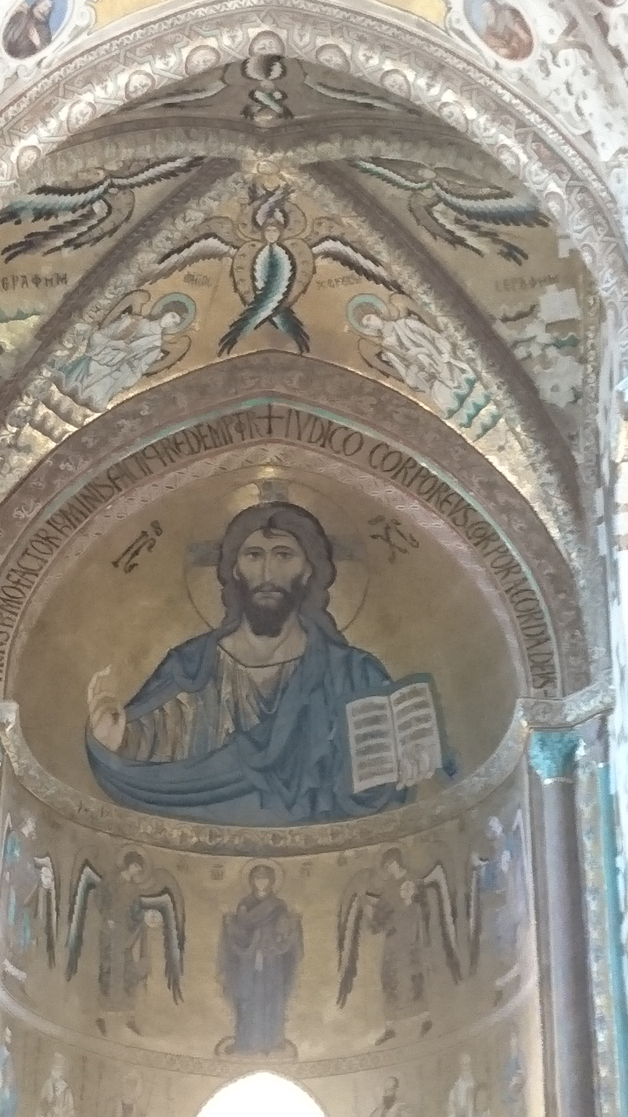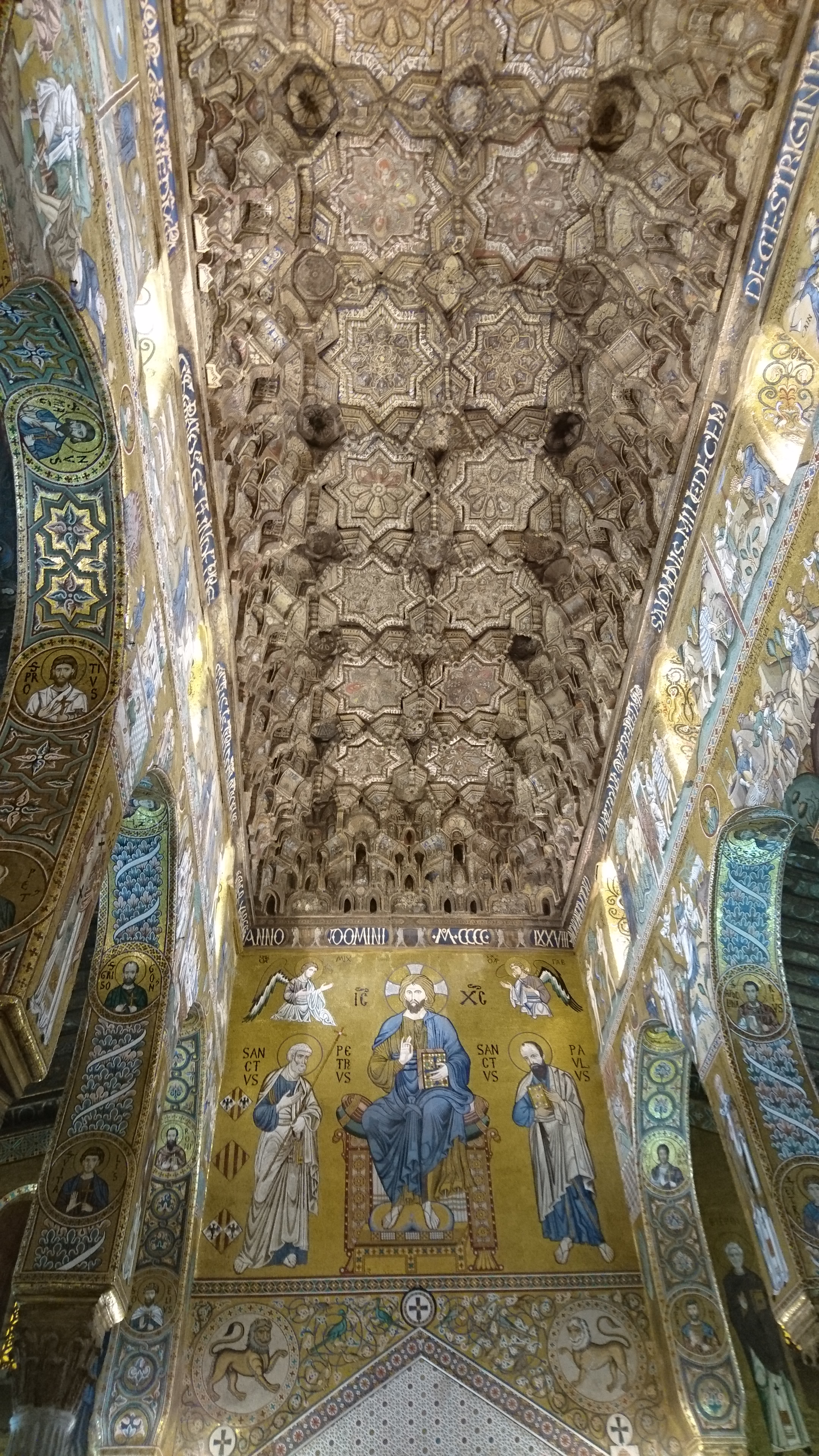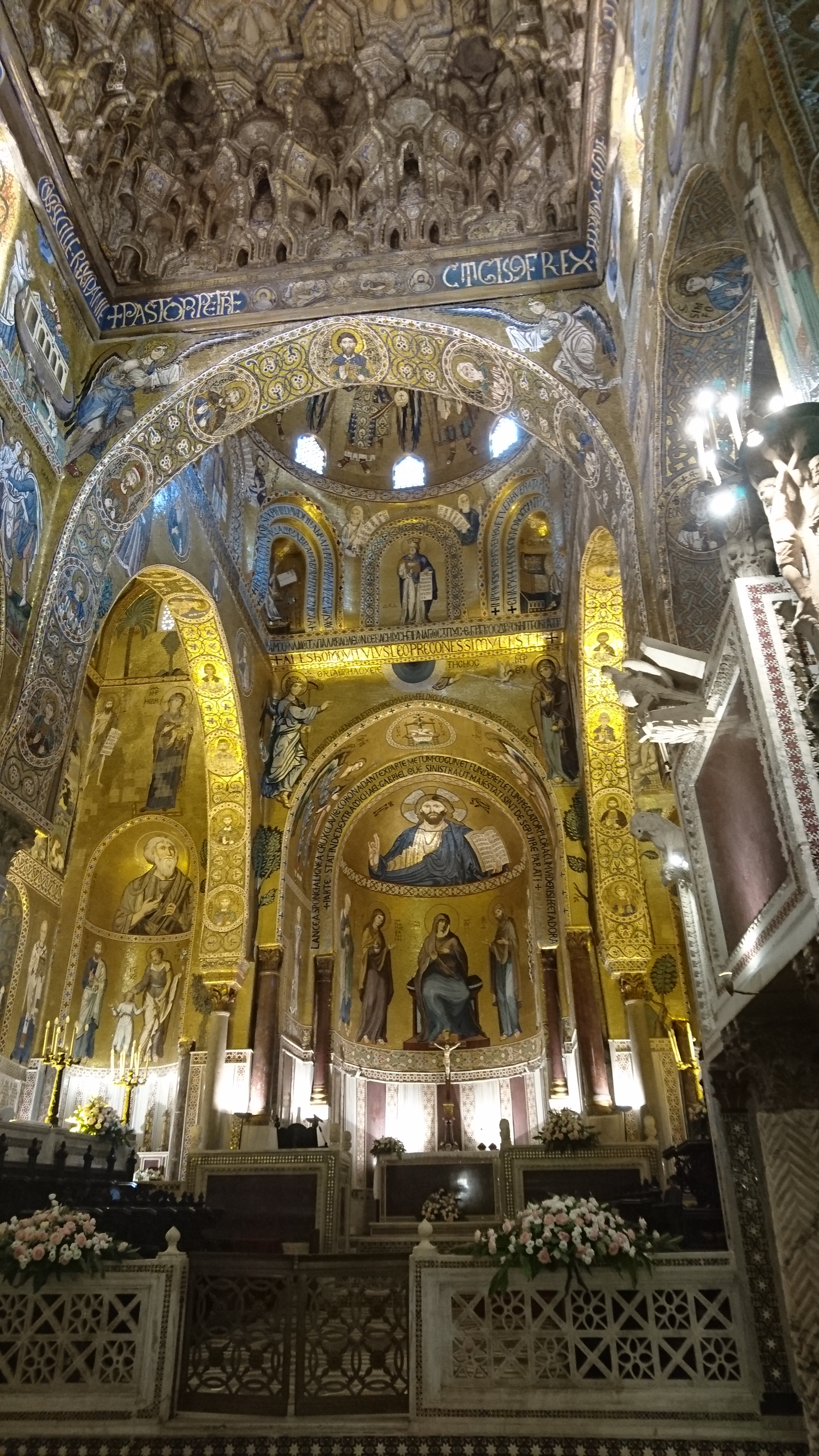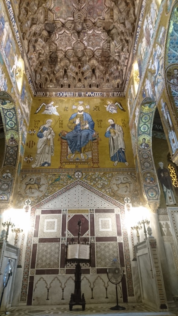 de kathedraal van binnen. Geen Pantocrator deze keer, maar de kathedraal is dan ook helemaal opnieuw opgebouwd ver na de Normandische tijd