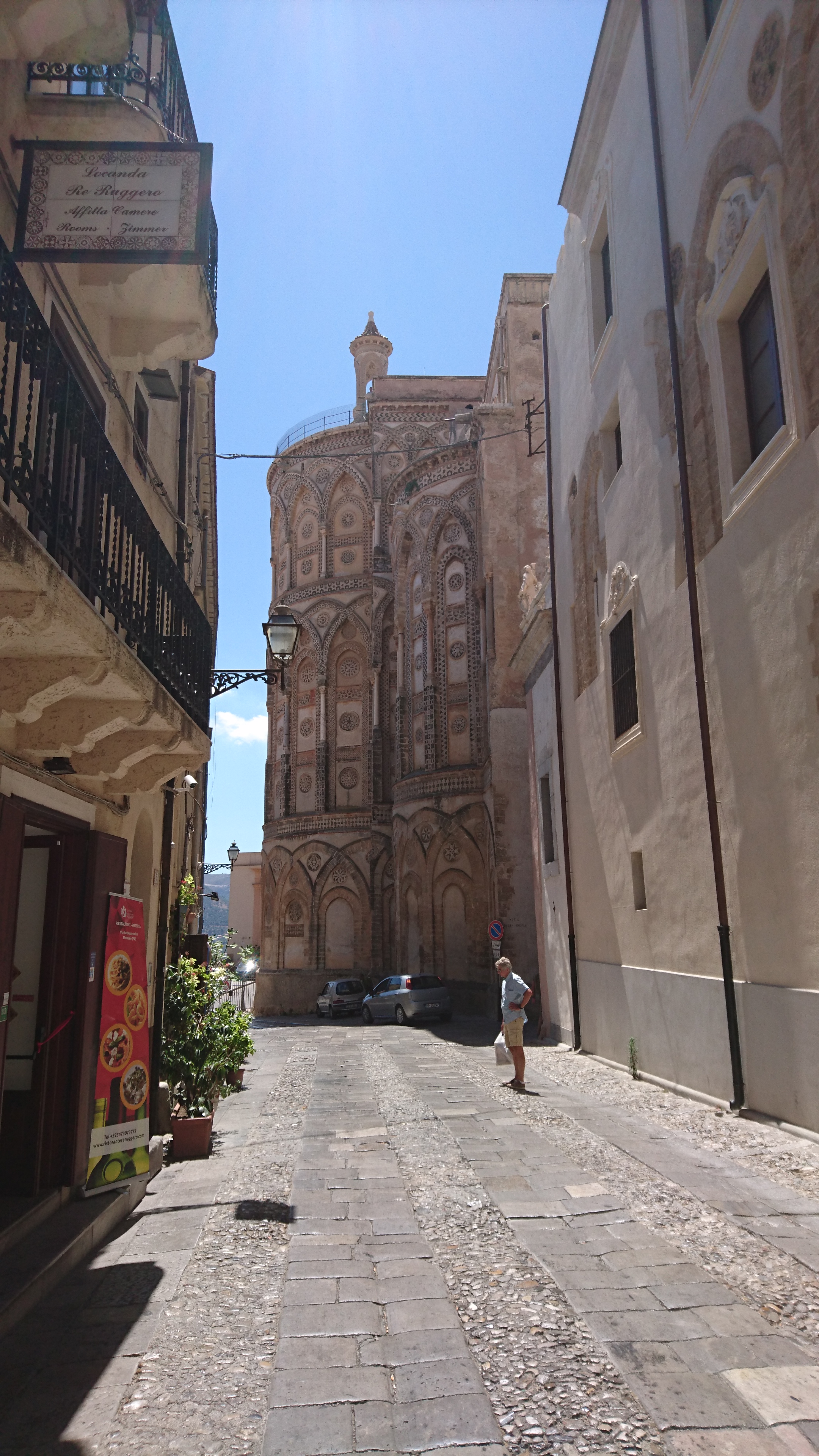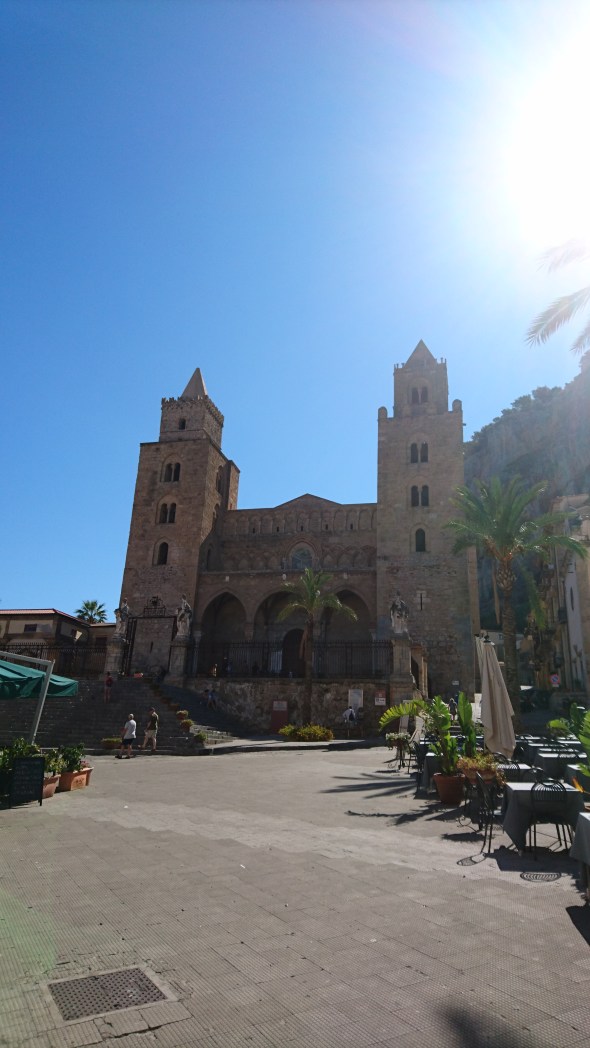 De volgende dag blijven we en we pakken de dinghy naar de wal om Cefalu te bekijken. Erg toeristisch en vol, maar we hebben wel heel lekkere bakker en slager gevonden! En een heerlijk ijsje (Marleen ijskoffie) genomen. Ook hier is weer een oude Normandische kathedraal met een Christus Pantocrator (de originele waarvan die in Palermo en Monreale kopieën zijn) en die bezoeken we ook. Driemaal is scheepsrecht.