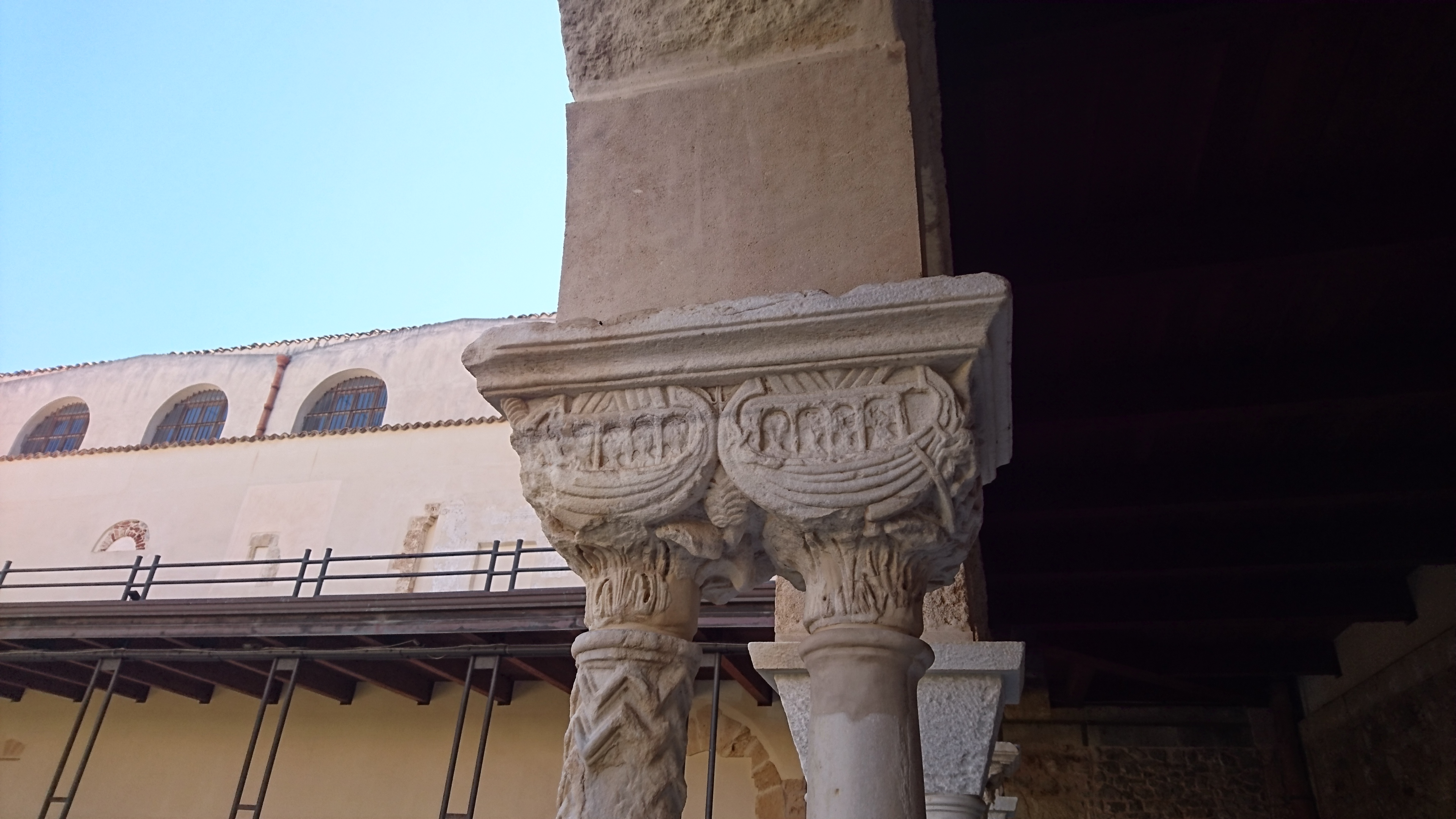 We blijven nog een dagje. Er is buiten toch geen wind en wel nog deining. Dus we nemen de bus naar Monreale (8 km de heuvels in) waar nog een Normandische kathedraal staat, die door Willem de tweede (de goede) is gebouwd op die plek omdat Maria hem in zijn slaap had ingefluisterd dat hier de schat van zijn vader (Willem de slechte) begraven lag. In ieder geval is het een schitterende plek met een mooi uitzicht en een prachtige kathedraal met klooster, die van binnen wel veel lijkt op die van Palermo. Ook een schitterende mozaiek van Christus Pantocrator.