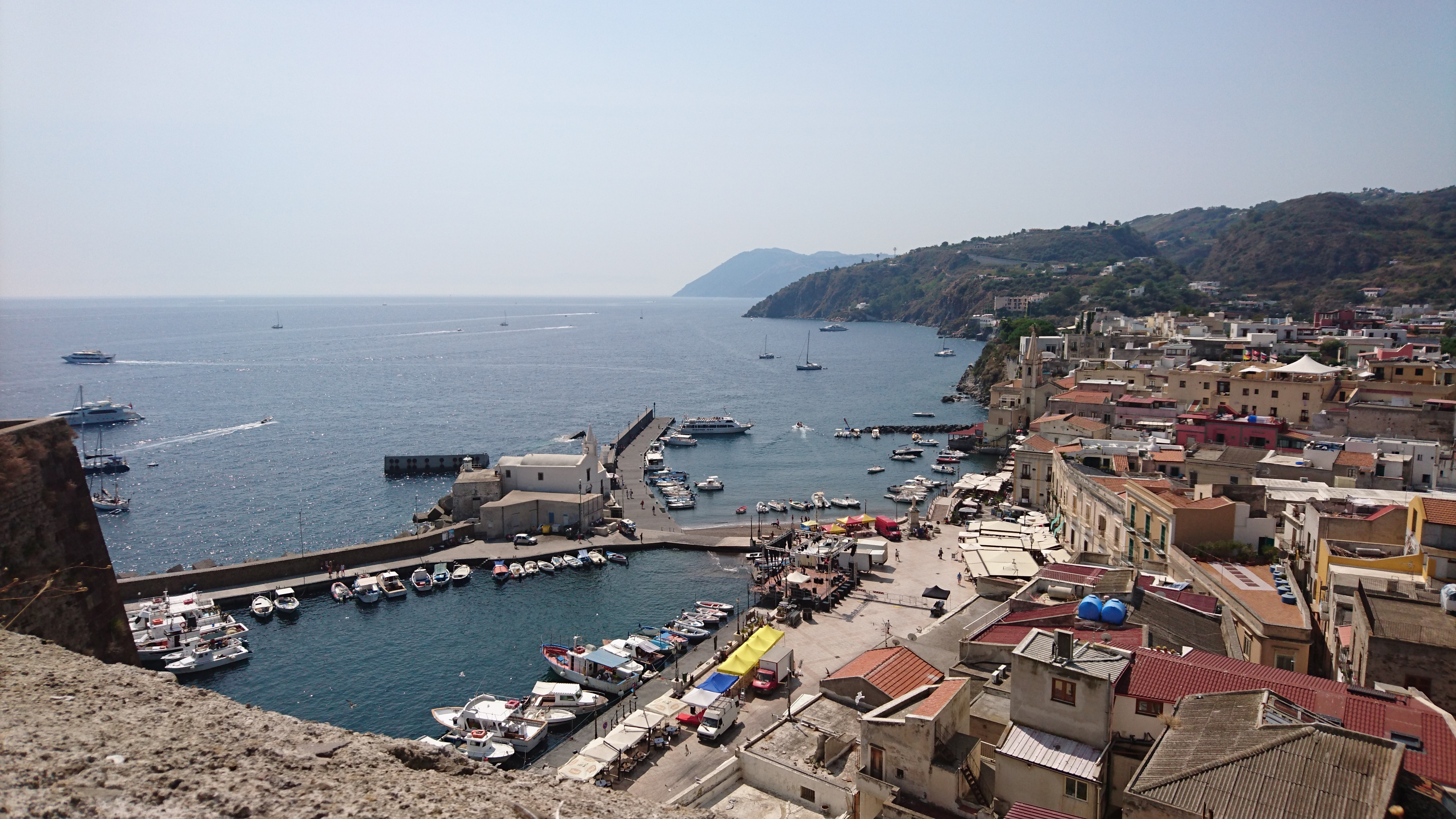 Milazzo ligt op een heel smalle landpunt die een mijl of drie de zee in steekt en meer dan 100m hoog is. Alweer een strategische ligging dus.