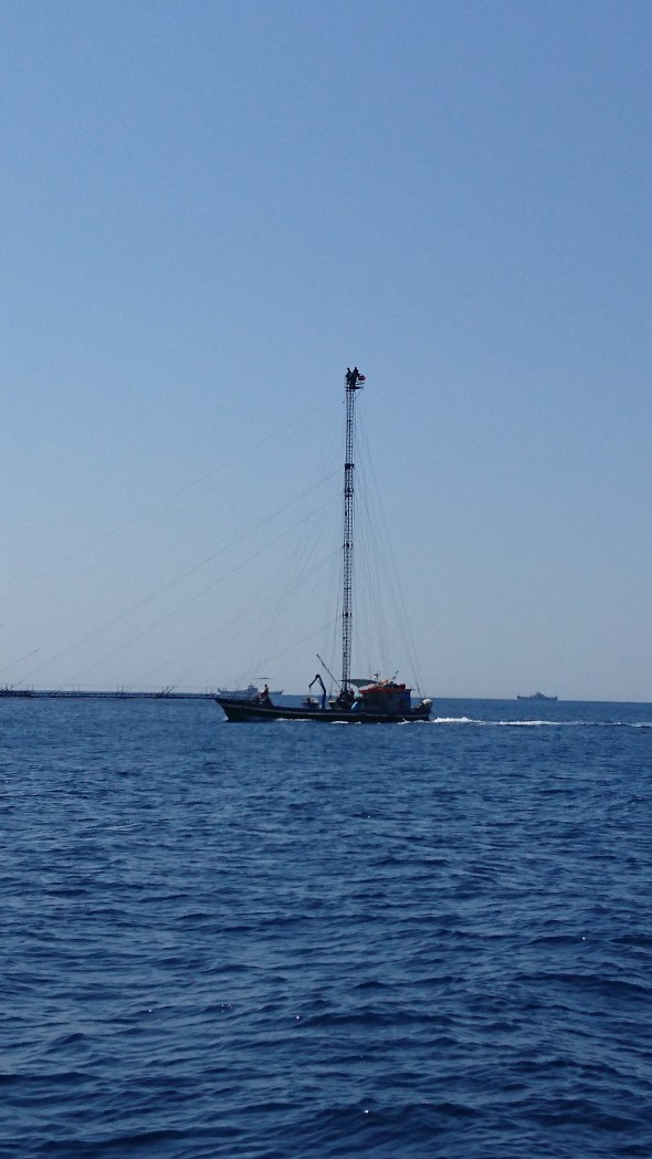 8 augustus: We gaan vroeg weg, om half acht gaat het anker omhoog. Het is windstil en de voorspelling is dat we de hele dag niet meer dan 6-10 knopen tegenwind krijgen, dus de motor krijgt het druk. De voorspelling klopt als een bus. Toch hebben we besloten om nu de oversteek te maken want hierna komt er een aantal dagen mistral (harde noordwesten wind met hoge golven) en we moeten toch echt naar Sicilië terug want Milou en Lennard hebben tickets vanuit Palermo en wij willen ook graag weer op tijd daar zijn.