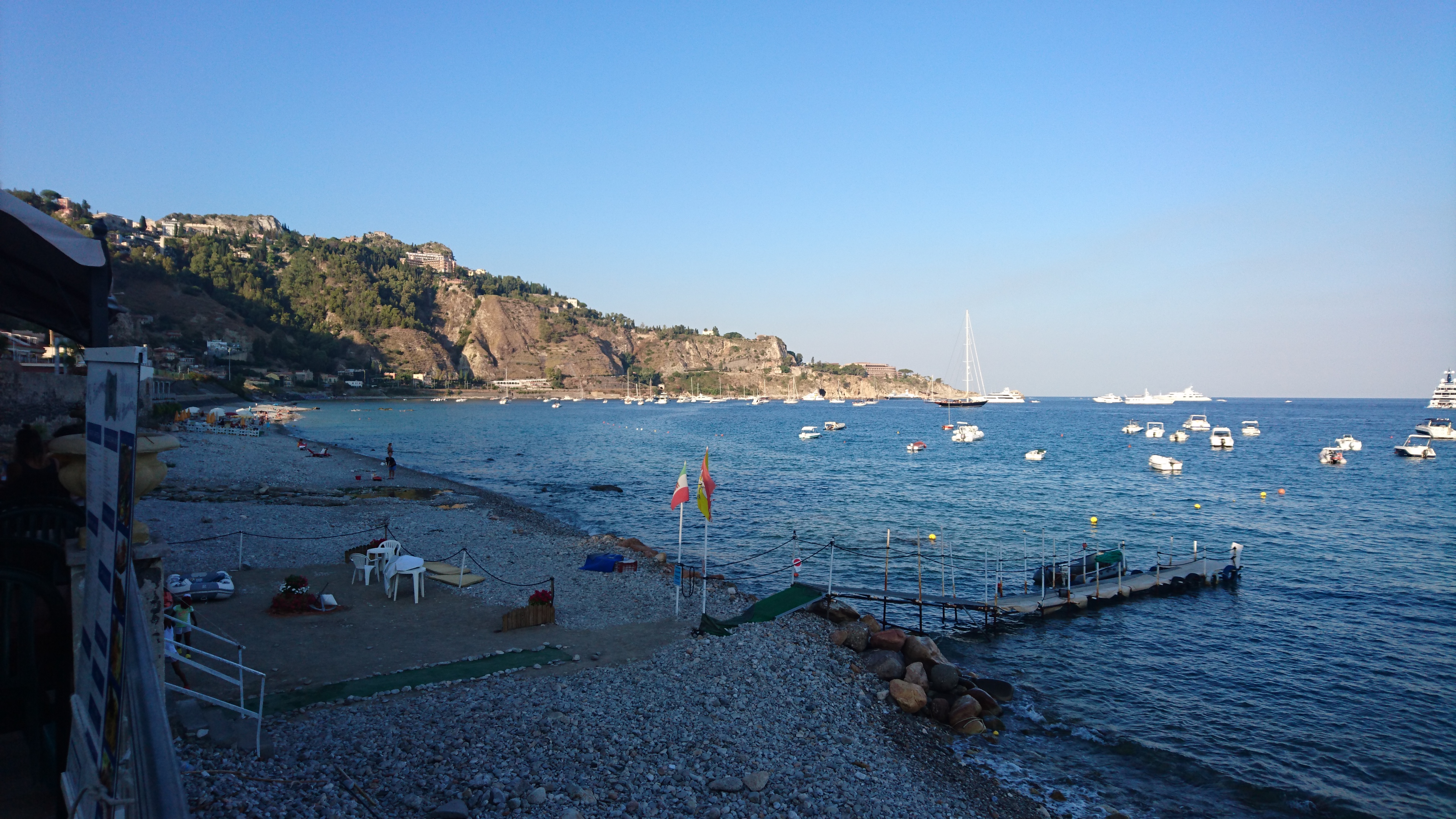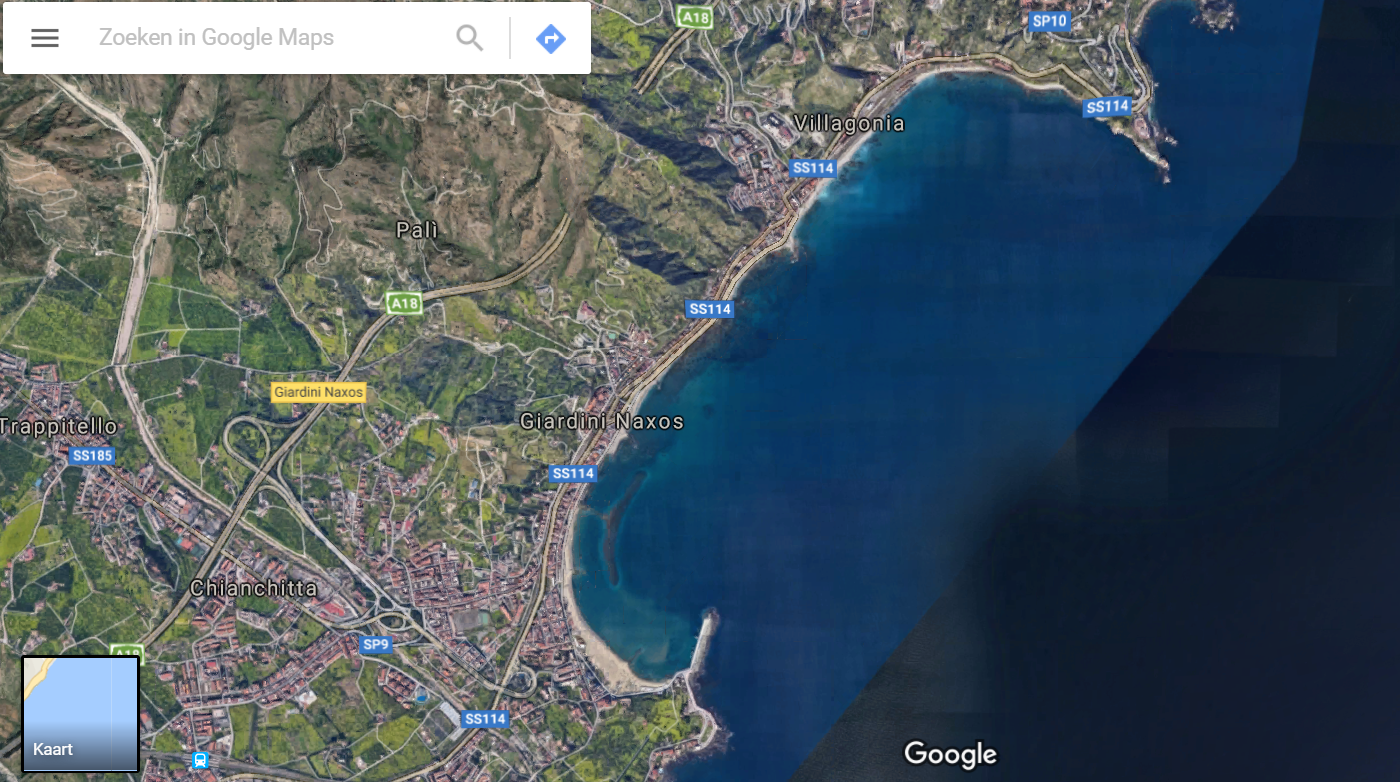 De tweede dag doen we niet veel. We zwemmen wat en varen met de dinghy naar het dorpje vlakbij, Giardini Naxos. Ooit was dit een Griekse nederzetting van het formaat van Syracuse, maar daar is niets van over. Wel een grappig Italiaans badplaatsje. We kopen weer wat verse spullen in.