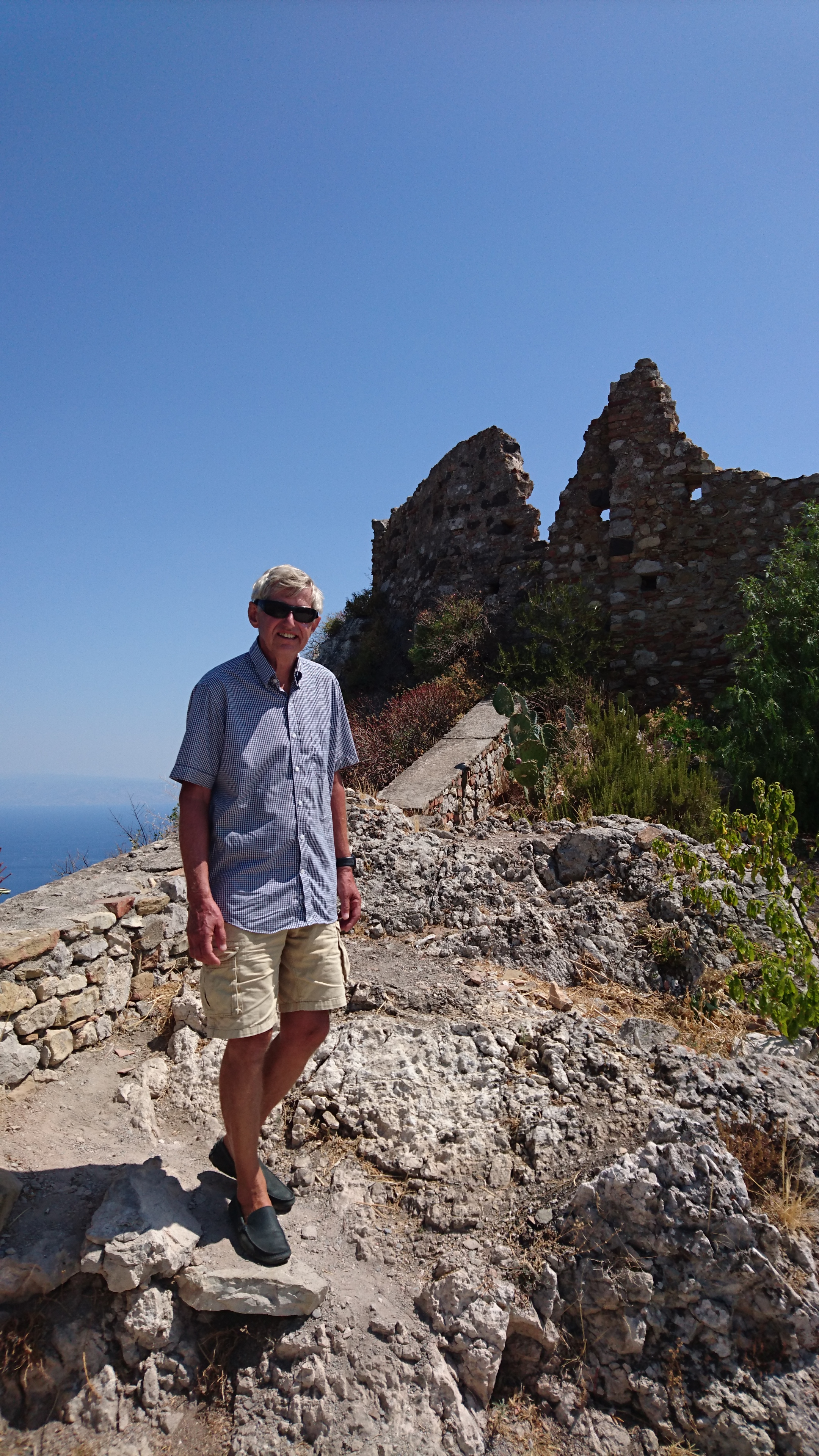 De derde dag nemen we de bus via Taormina naar Castelmola, dat 7,5 km en een paar honderd meter hoger ligt. Een indrukwekkend ritje en een mooi oud plaatsje bovenop een steile berg. De burcht hier dateert ook nog uit de Griekse tijd maar is later door de Normandiërs helemaal veranderd. Met Milazzo samen was dit 1 van de sterkste verdedigingspunten van hen.