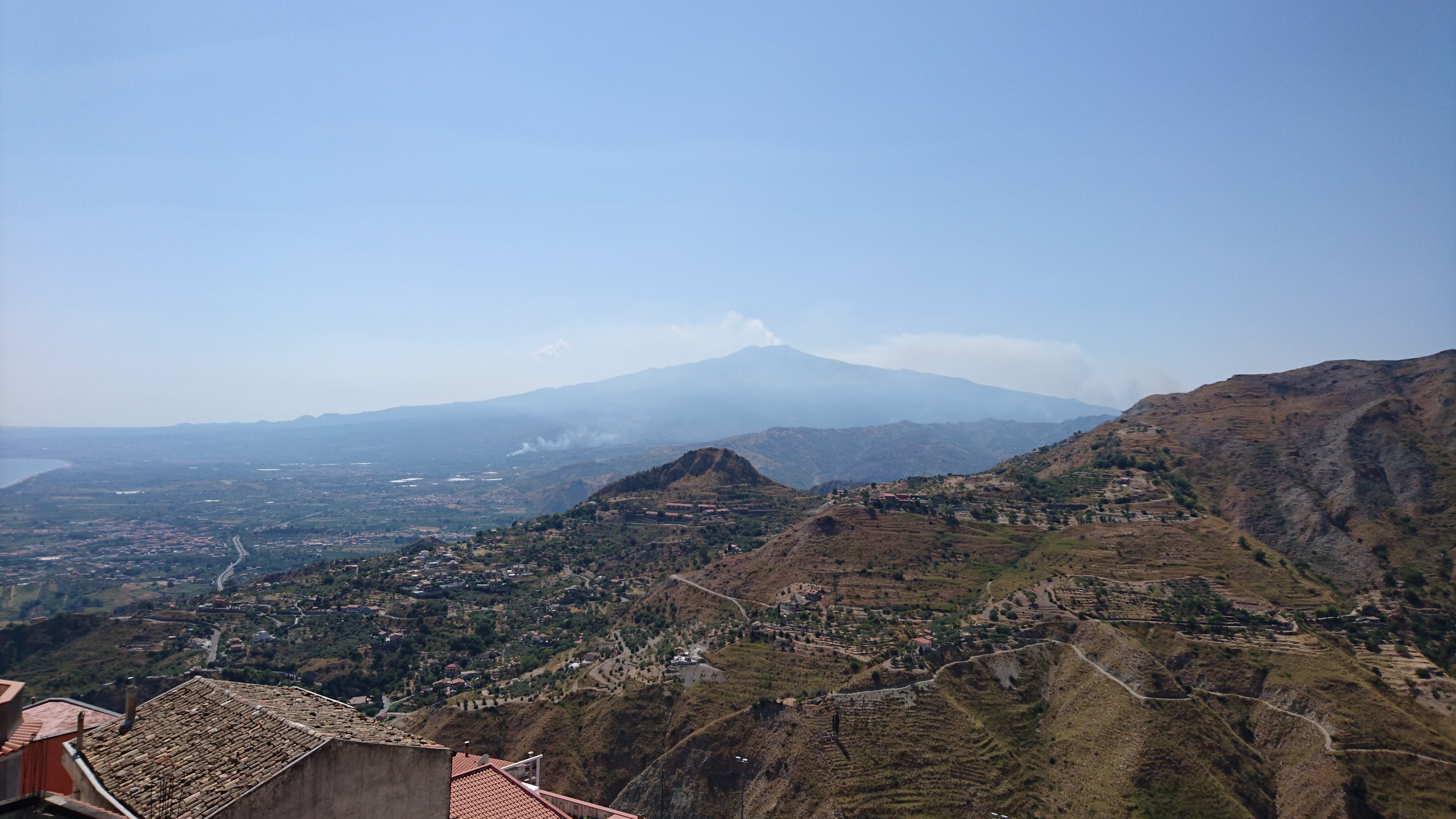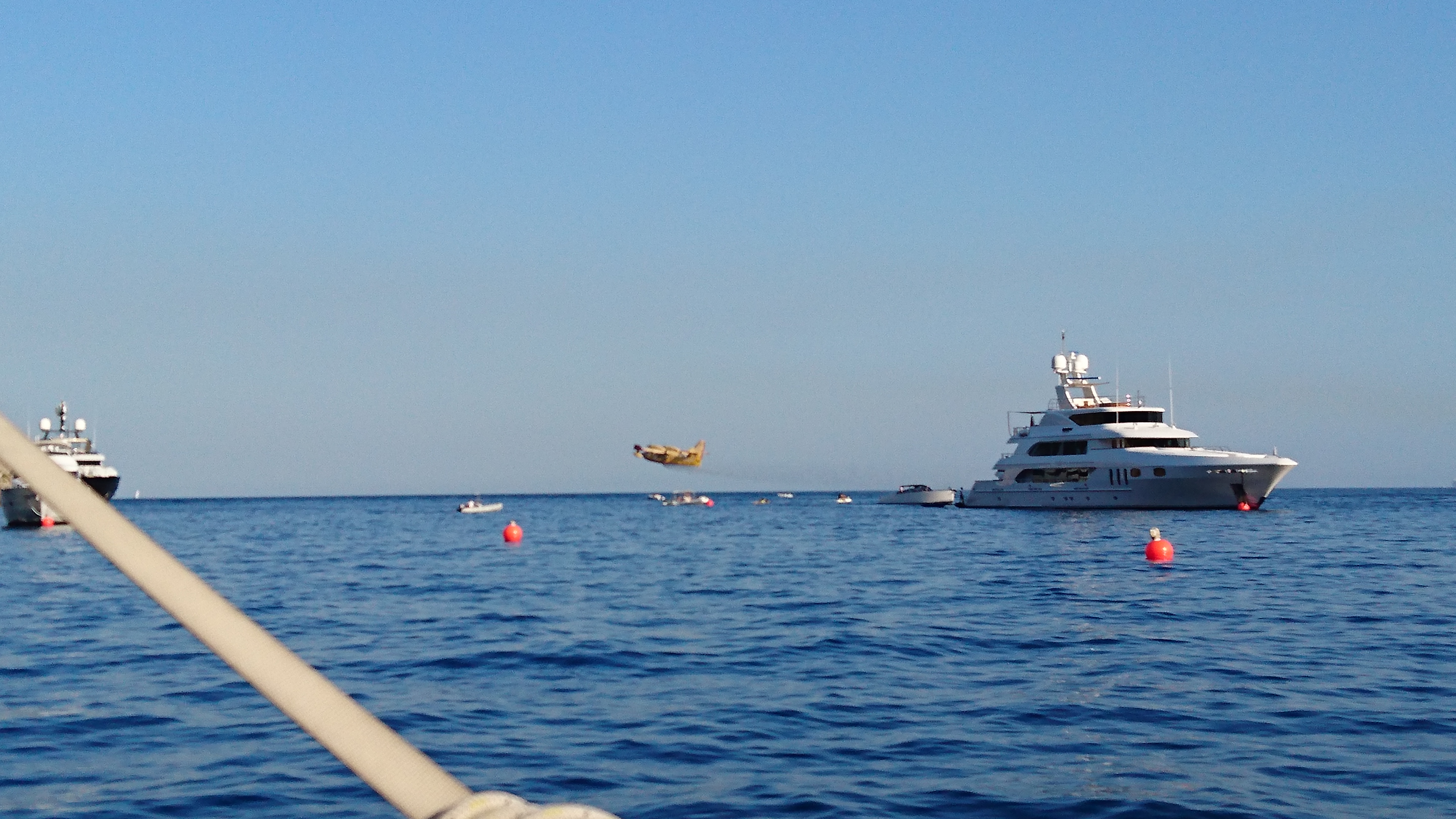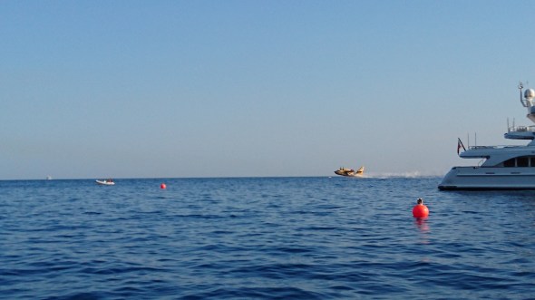 Terug op de boot zagen we blusvliegtuigen water innemen in de drijvers onder hun vleugels om daarmee een bosbrand op de helling van de Etna te blussen. Het lijkt gelukt, want we zien geen andere rook meer dan het pluimpje aan de top van de Etna zelf.