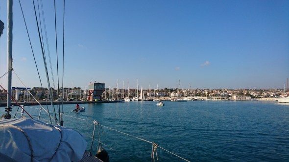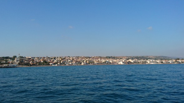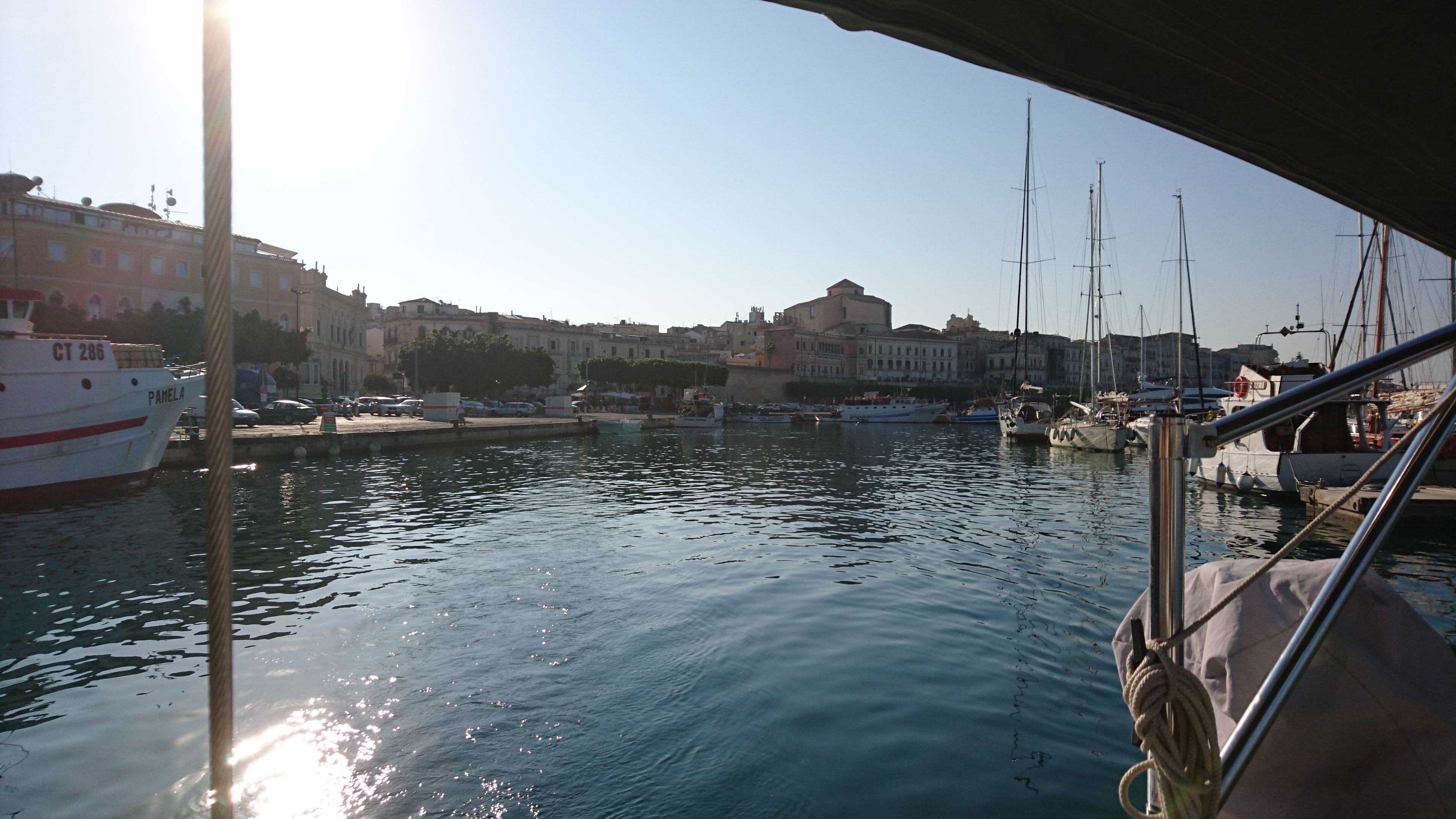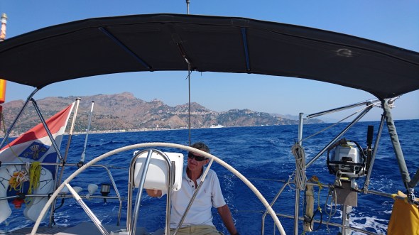 We varen van Taormina naar Syracuse, zo’n 45 mijl. We wilden eigenlijk naar Catania maar dat werd ons afgeraden door de mannen van George, onze mooring-man bij Taormina.
