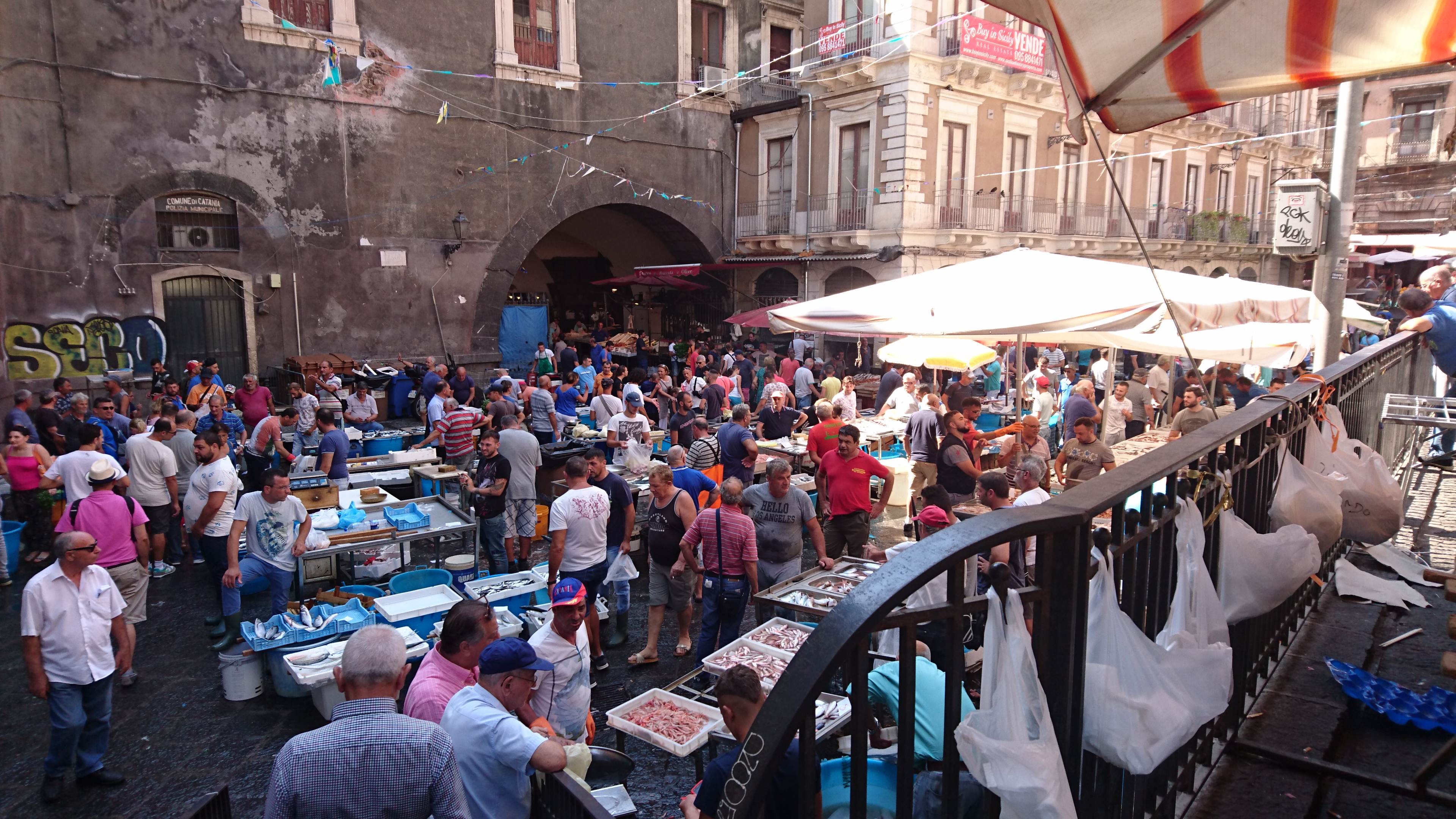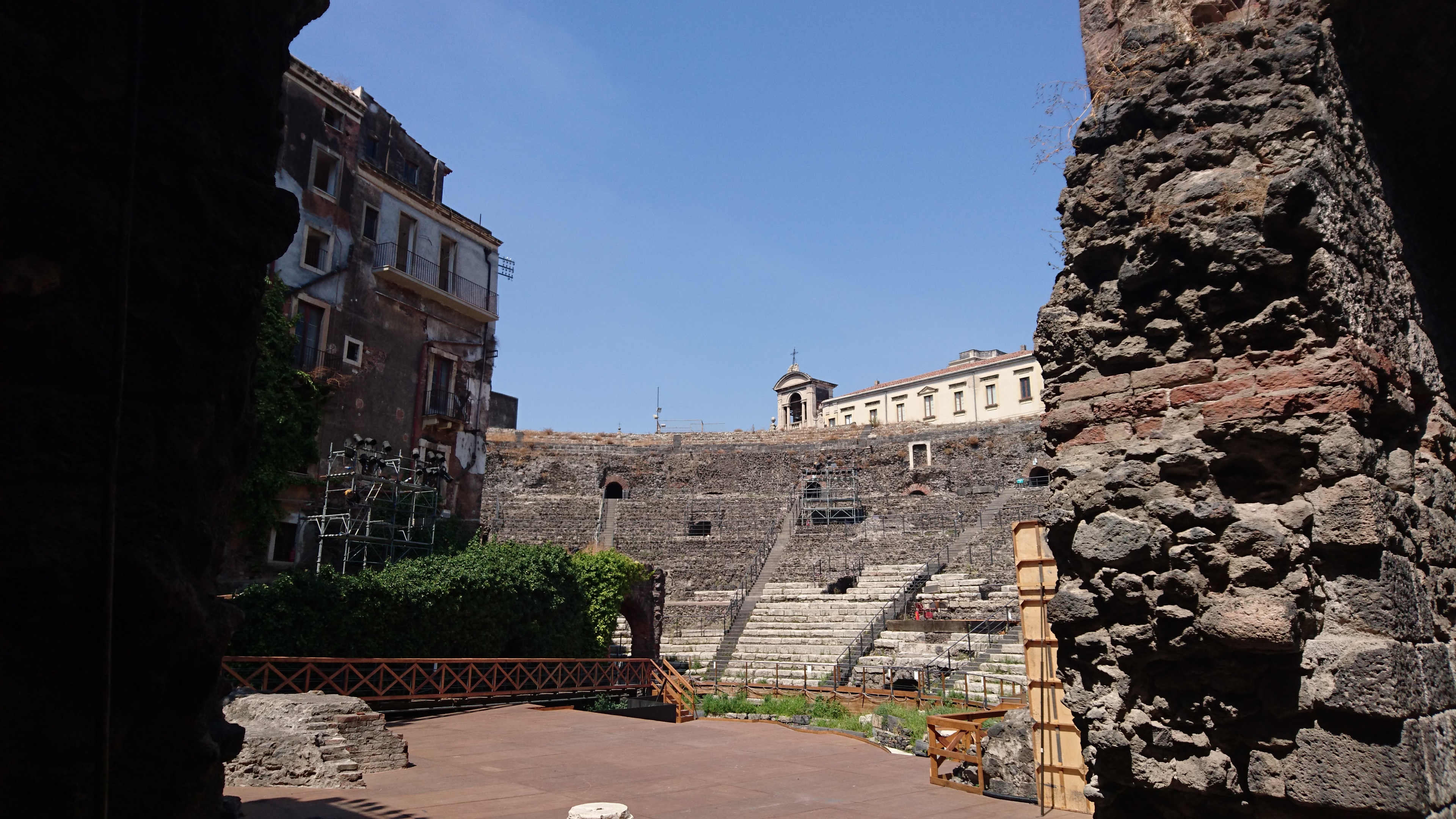 Catania is wel weer een heel andere stad dan we tot nu toe gezien hebben op Sicilië omdat het de hoofdstad is met een grote universiteit. Maar er zijn toch ook echt Siciliaanse dingen te zien, zoals de grote en heel drukke vismarkt, weer een Duomo met Normandische oorsprong, een groot kasteel van Frederick von Hohenstaufenn en, natuurlijk, veel pasticcerias en trattorias. En een heel mooi amfitheater uit de Romeinse tijd met alle gangen eronder nog vrijwel intact. In de middeleeuwen en daarna zijn er huizen bovenop gebouwd, die nu weer deels gesloopt zijn. Bijzonder!
