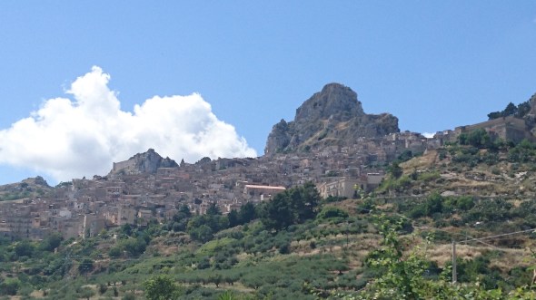 Daarna rijden we naar Caltabelotta, een dorpje op 1000m hoogte in de bergen boven Sciacca en bijna helemaal middeleeuws. Het is jammer genoeg siëstatijd als we daar aankomen dus het is er doodstil.