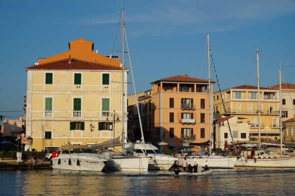 Het is er nu erg rustig en we krijgen een plek achterin de haven waar het iets rustiger is dan de vorige keer. We gaan de wal op, drinken een CS (zie apart bericht daarover: een winnaar!) en eten heerlijk in een restaurant met vleesspecialiteiten van Sardinië.