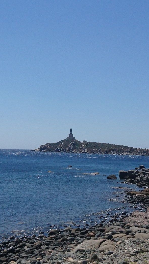 Het waait de hele dag meer dan 25 knopen dus we blijven liggen. We maken een flinke wandeling naar een strandje bij de kaap, ten zuiden van de haven. Van daaruit heb je mooi uitzicht over zee en de kaap met de vuurtoren. Een heel ander landschap dan Sicilië.