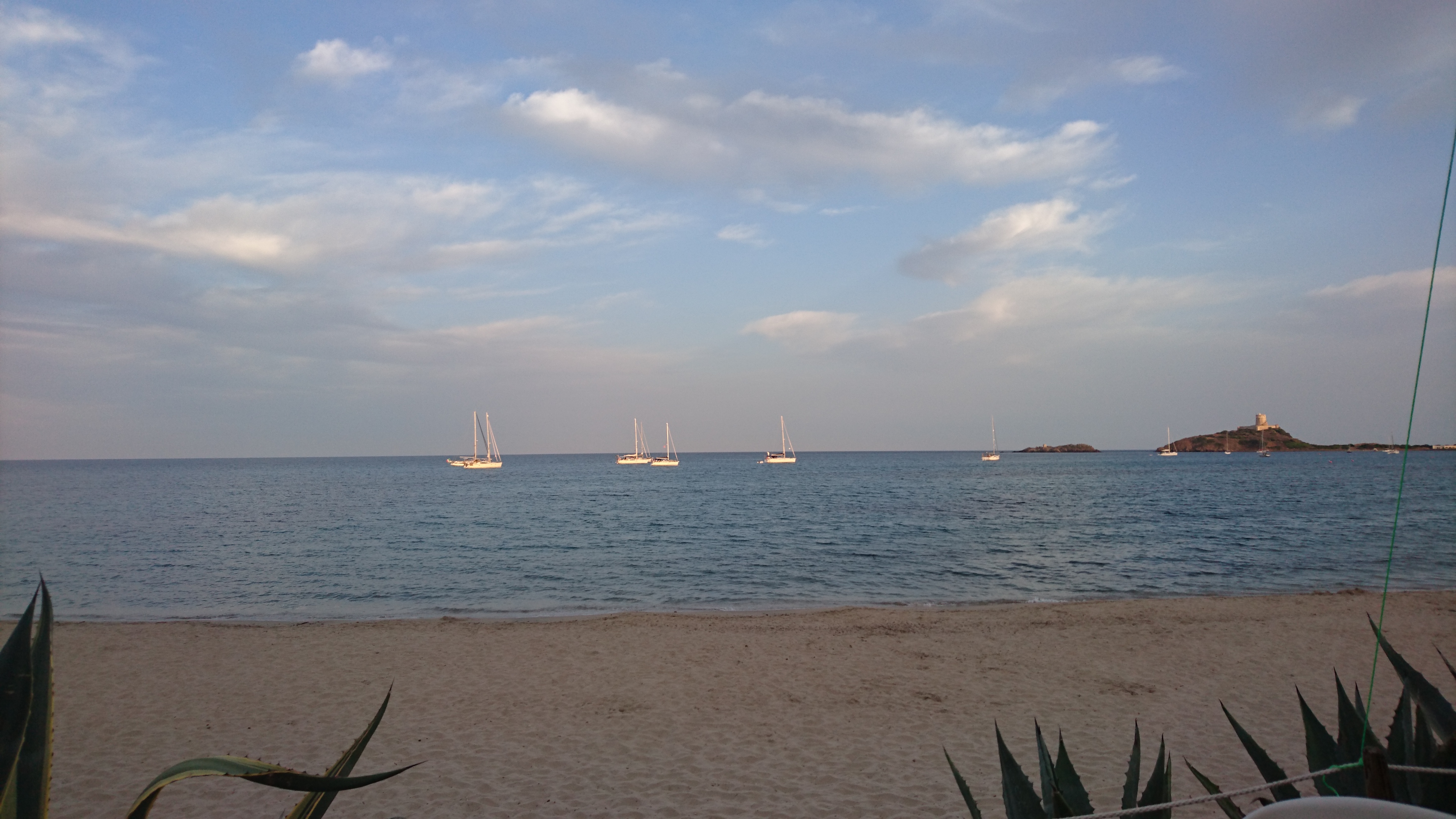 We varen Cagliari uit en kunnen direct zeilen. Heerlijk 22 mijl halve wind naar Capo Carbonara, waar we omheen gijpen om te ankeren voor het strand van Porto Giunco, aan de andere kant van Villasimius dan we vorige keer lagen. Ikiro volgt en Starship ligt er al. Diva X, vrienden van Ikiro, ankeren ook achter ons. Het waait 18-20 knopen dus het anker graaft direct goed in. Toch nog maar even zwemmen om dat te checken. Na een lui middagje gaan we weer met alle dinghies naar het strand voor de volgende CS test in de beach bar. Een 8,5 deze keer, Marettimo blijft ongeslagen vooralsnog. Ook vergeleken we Aperol Spritz met CS, maar de laatste wint het voor ons allemaal.