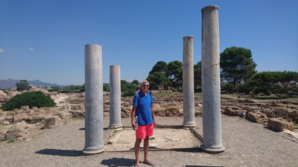 De volgende dag bezochten we met elkaar de ruïnes van de oude stad Nora, op een landtong aan het einde van de baai. Interessante combinatie van een oude Phoenisische stad en de latere Romeinse stad. Beiden waren in hun tijd het handelscentrum voor Sardinië met Afrika, mede door de gunstige ligging van de baaien waar met elke wind beschutting te vinden is.