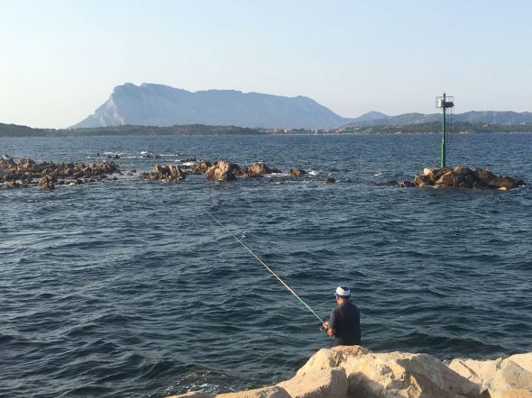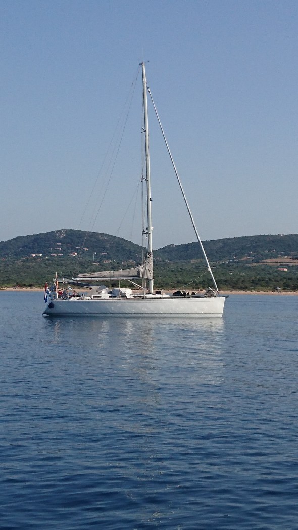 Nadat Jeroen nog even 2 km gezwommen heeft in de baai, varen we weg van Capo Comino richting Olbia. Mooi zeilweer met steeds meer wind uit ZO, dus een ruime koers. We varen naar Isola Tavolara, maar daar is het ankeren niet geschikt met deze wind. Dus zoeken we een baai op aan hoger wal bij Capo Cavallo voor een lunchdip. Daarna de haven in, want de wind zou 180 graden draaien en toenemen en dan lig je hier weer verkeerd midden in de nacht.