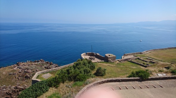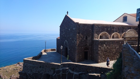 castelsardo is een oude stad met een grote vestingwal op een rotspunt, zoals je wel vaker ziet in de Med. Denk aan Monnemvasia, Syracuse maar ook Porto Vecchio. Vanuit de zee ziet het er al aardig beveiligd uit: