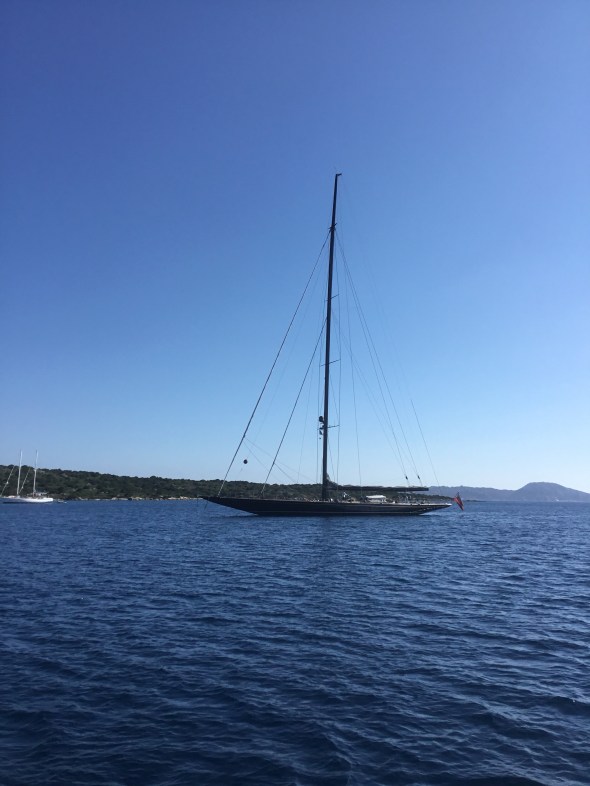 Op 18 Juli spreken we af te ankeren met Starship samen in de Porto Liscia baai, een hele grote baai waar je, ondanks een flink aantal boten, toch heel rustig en ver van elkaar ligt. Ook Enterprise, Duitsers die we in de Carieb ontmoet hebben, hebben hier met Starship afgesproken. We blijven er 2 dagen voor anker liggen, gewoon omdat het mooi en gezellig is. Het anker is weer goed getest met 25 knopen wind en de ankerlier hebben we ook weer een smeerbeurt gegeven. Ook de WC afvoer moest weer eens ontstopt worden……