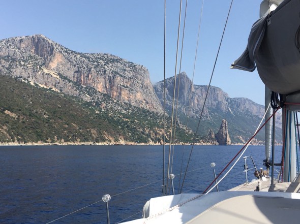 We varen van Cagliari naar Santa Maria Navarrese. Op de motor, jammer maar er is gewoon nul wind.