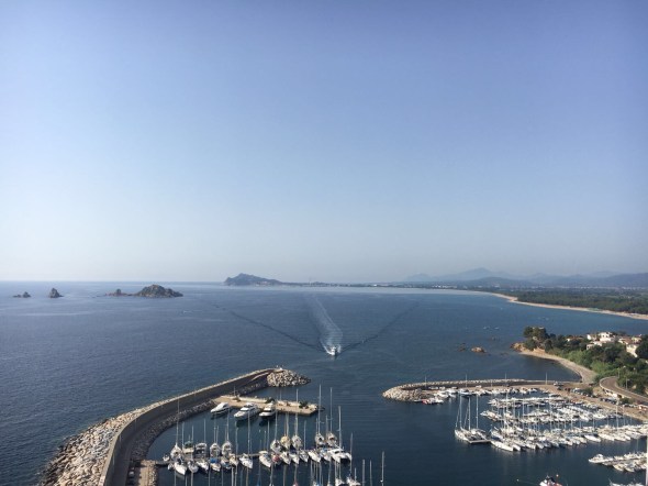 Anker op om 10:30. Van Isle Cavallo varen we eerst op de motor door een nauwe doorvaart tussen het eiland en de kust van Corsica. Het waait flink, 18-21 knopen (zoals de hele nacht eigenlijk wel). Daarna snel de zeilen erbij en kruisen langs Bonifacio. Om 13 uur varen we de baai van Figari in, waar we eerst onder de toren nog even willen ankeren voor een lunchdip. Maar het anker graaft niet in. Teveel wier en ook flink diep. We varen dus al snel weer door en leggen aan terwijl de complete havendienst ligt te pitten (“il ne faut pas arriver quand nou dormons, monsieur”, was het commentaar van de havenmeester. we mochten gewoon blijven liggen op de zelfgekozen plek overigens).