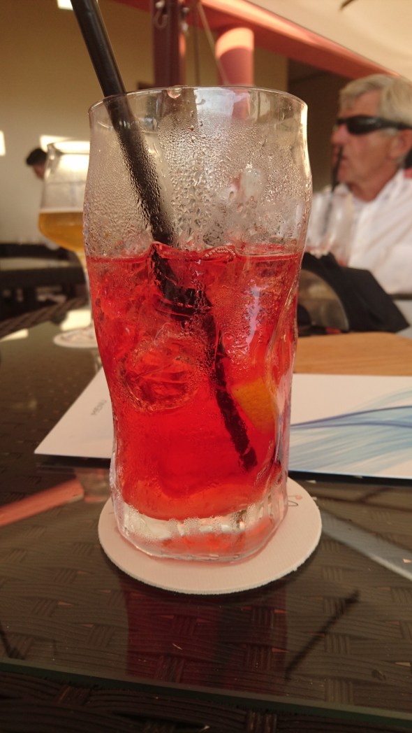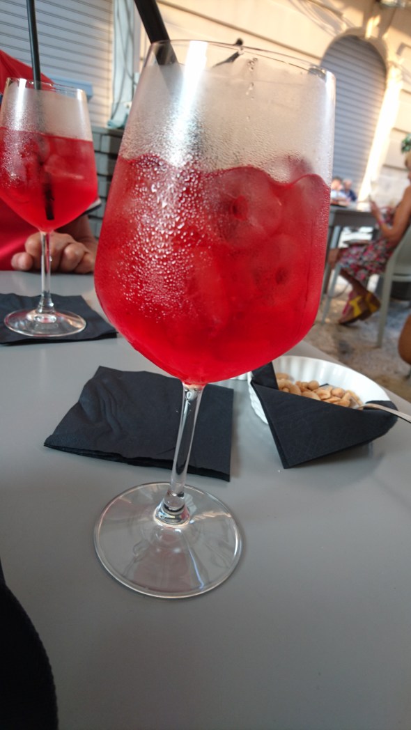Later, met Milou erbij, in Villasimius, waar we vorig jaar met hen samen de eerste CS ooit dronken. Een 8,5, zeker ook door de goede hapjes en het prima campari- en alcoholgehalte. Wel in een gek glas…..