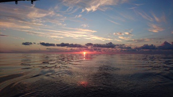 We maken een mooie zonsondergang mee, waarbij wel duidelijk wordt dat de bewolking begint toe te nemen.