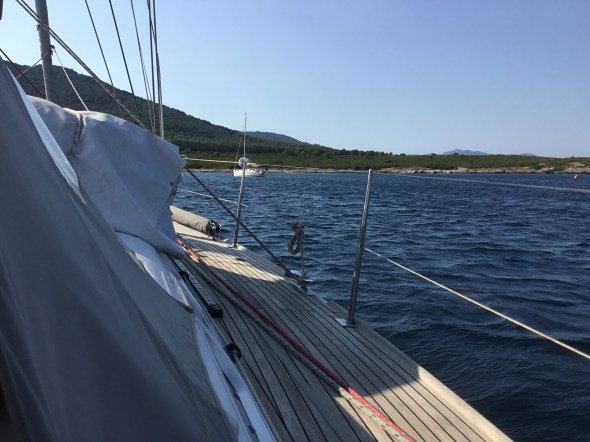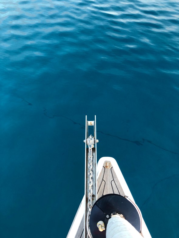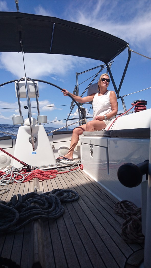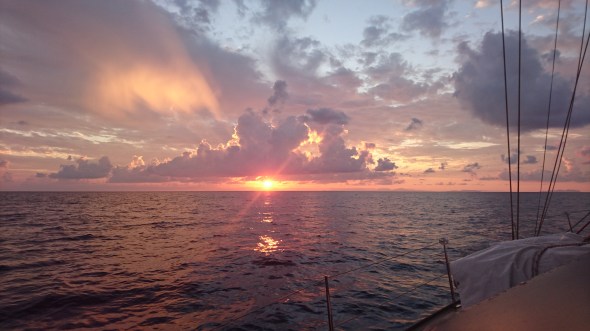 Het wordt een saaie tocht, 145 mijl op de motor want er is echt nul knopen wind, met een maximum gemeten van 6 knopen in de vroege ochtend, maar dan wel recht van achteren.