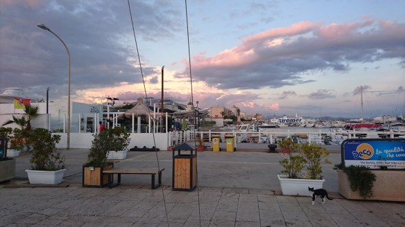 Onderstaande foto’s geven wel een aardige impressie van de haven, helemaal op de kop van het schiereiland waarop Trapani is gebouwd en naast de vissershaven. Vanavond staat verse zwaardvis op het menu!