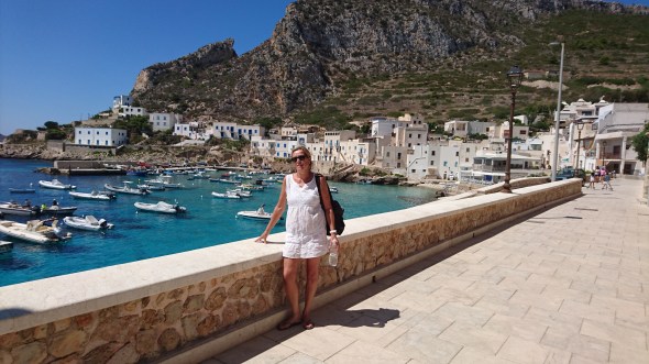 Nadat we nog even wat lekkers bij de bakker hebben gehaald, wachten we tot de grijze wolk boven het naburige eiland Favignana weggetrokken is. Dat is het teken dat we de rest van de dag mooi weer krijgen.