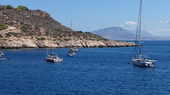Het is vandaag stralend weer en dat blijft de komende dagen zo. Geen haast om terug te varen naar Marina di Ragusa. We besluiten nog 2 dagen te genieten van de Egadische eilanden. Daar er nog wel wat deining staat na de harde NW wind van de afgelopen dagen, zoeken we de meest beschutte baai op, bij Levanzo.