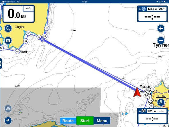 Op 17 augustus om 09:15 vertrekken we uit Villasimius met bestemming Marettimo, het eilandje voor de kust van Sicilië waar we op de heenweg ook waren met Rob en Bianca.