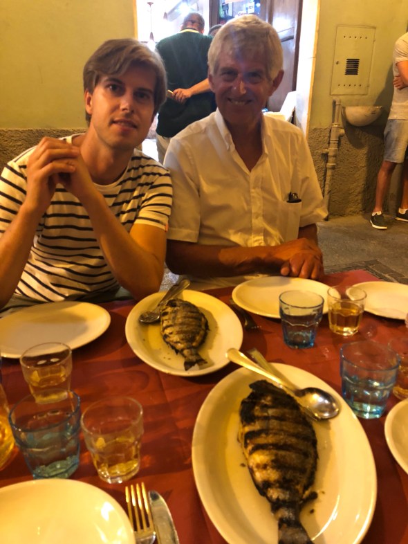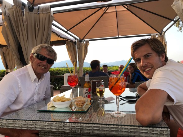 Op zijn Italiaans ontbijten we de volgende dag met een cornetto ( dat is een zoete croissant) en cappuccino. Heerlijk en gezellig om Silvio, Antonella en Sara weer te zien en kennis te laten maken met Lennard en Milou.