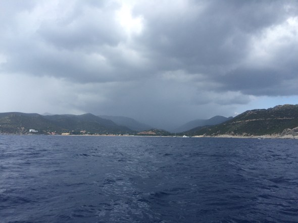 Op 6 augustus hangen er nog wel wat rommelende wolken boven het land maar we varen toch uit. We hebben geregeld dat we naar Cagliari gaan om van daar met een vlucht naar Nederland heen en weer te gaan.