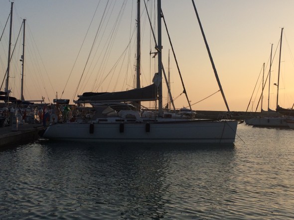 31 augustus. Het is weer bladstil en warm, we zitten middenin een hogedrukgebiedje. In de middag komt er nog een beetje wind van achteren maar we zeilen maar 2 uur van de 8 die het kost om in Licata te komen. Daar liggen we aan dezelfde steiger als Jeroen en Anneke met hun Dutchess, zij kwamen net voor ons vanuit de andere kant binnenvaren. Zij hadden wel lekker gezeild want aan de wind heb je aan de 8-9 knoopjes wind wel genoeg.