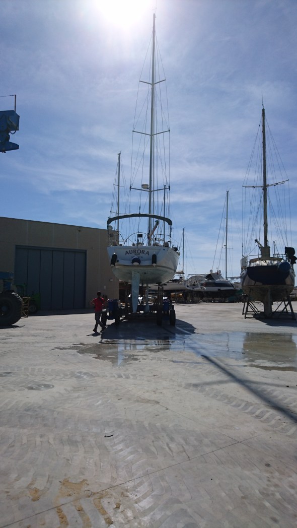 We zijn weer even aan het klussen en de Aurora gaat op de wal voor een nieuwe antifouling beurt