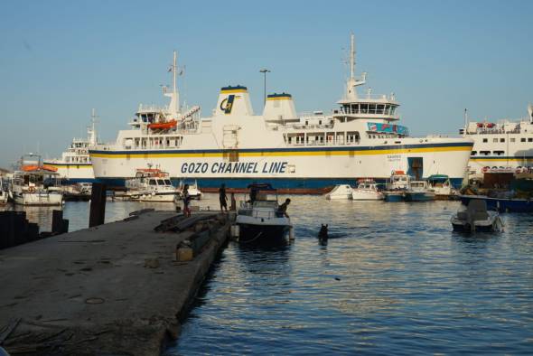 We ankeren 2 dagen in Comino en zeilen dan tegen de klok in om Gozo heen. mooie wind. Op Gozo genieten we van een goede CS op het terras dat drijft in de haven. En we zien een paard dat mag zwemmen in de haven. Briesend en wel, lijkt het hem wel te bevallen. Later zien we het paard draven over de kade aan een lange lijn met zijn begeleider die meerent.