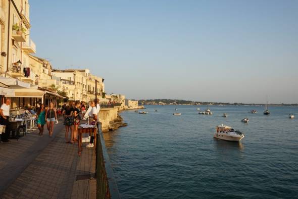 De dag erna zeilen we naar Siracusa, altijd een mooie bestemming . We drinken een CS bij onze favoriete tentje met uitzicht op de haven.