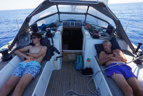 de laatste foto is van de siesta tijdens de oversteek, toen de wind wegviel….