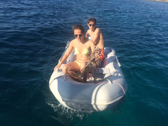 Op dinsdag 6 augustus blijven we liggen, lekker zwemmen, wandelen naar de Blue Lagoon en luieren. De motor van de rubberboot doet het weer perfect!