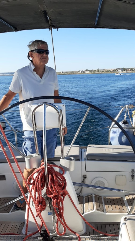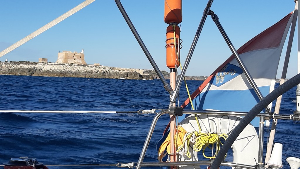 De volgende dag varen we om 09:00 weg, noordoosten wind! We ronden Capo Passero met een modelgijp en zeilen nog zo’n 15 mijl voor de wind inzakt. Later draait hij via zuid naar zuidwest en kunnen we nog een stuk zeilen. Een paar mijl voor de haven valt de wind weer weg, jammer genoeg. Maar het was gewoon een lekkere zeildag. Achter ons is het zwaar bewolkt geworden, we horen later van Michiel en Petra dat zij achter ons in de regen zaten ( maar wel steady wind hielden). We leggen aan en gaan direct naar de wasmachines, het borreltarras bij Frangipani en daarna een pizza halen. Geslaagde dag dus!