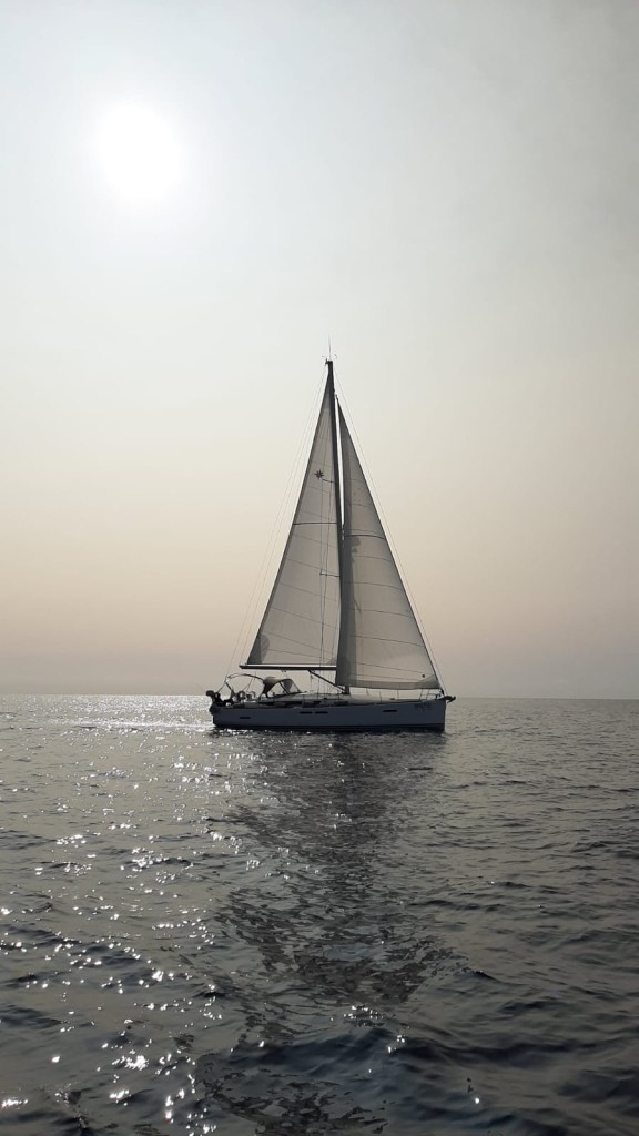 We zeilen eindelijk weer, nu echt. Nadat Domenica, de duiker, de schroef heeft schoongemaakt en we het overdrukventiel van de boiler hebben vervangen, vertrekken we dan echt op de kop af een week nadat we weer op de boot terug waren.