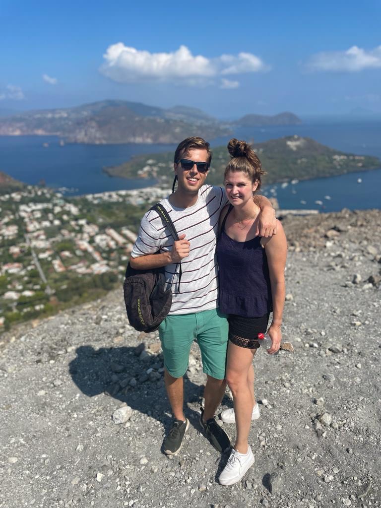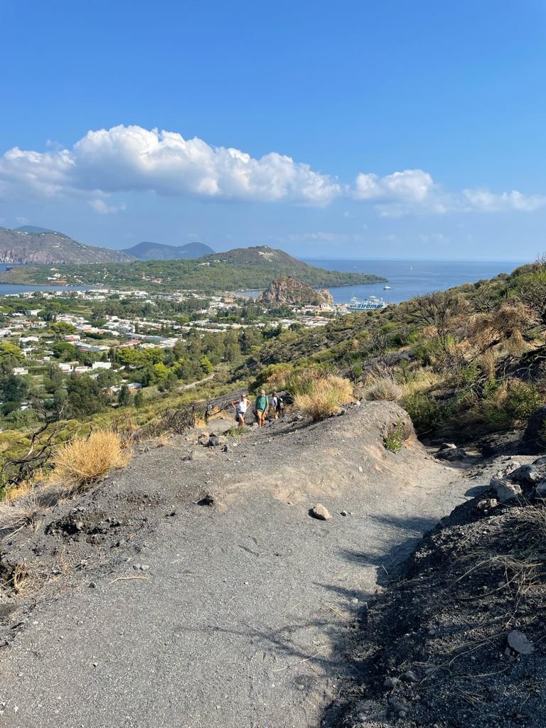 De volgende ochtend rijden we naar het uitzichtpunt bij Capo Grillo en beklimmen we de vulkaan. Dat is 45 minuten lopen en goed te doen. Vulcano en Stromboli zijn de enige eilanden die nog actieve vulkanen hebben. De Grieken bedachten dat Hephaistos, de smid onder de goden en God van het vuur, op Vulcano woonde. De Romeinen noemden hem Vulcanus en het eiland Vulcano. Ziedaar de oorsprong van het woord vulkaan