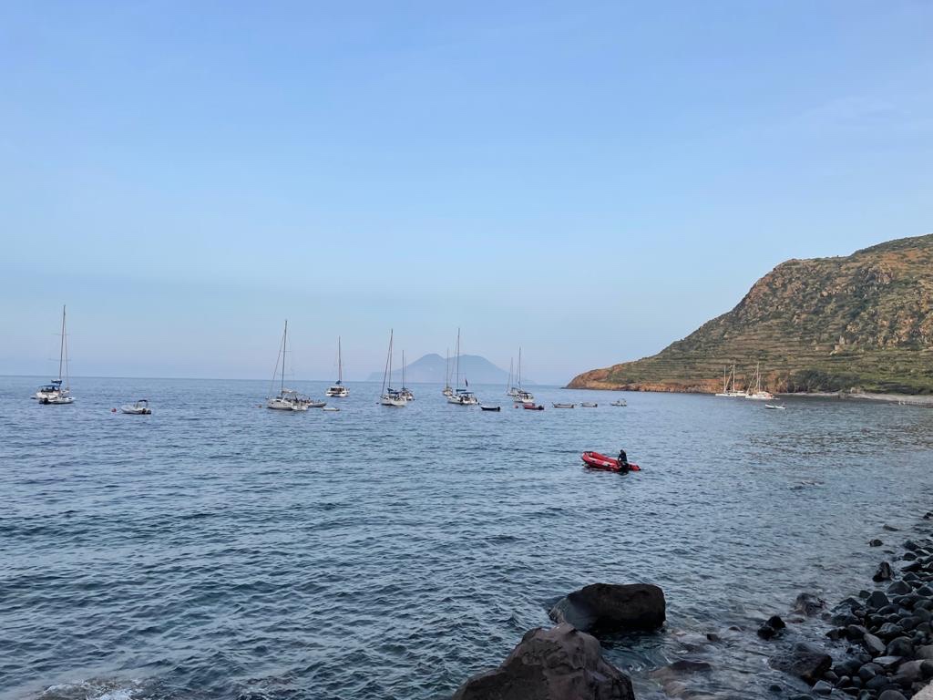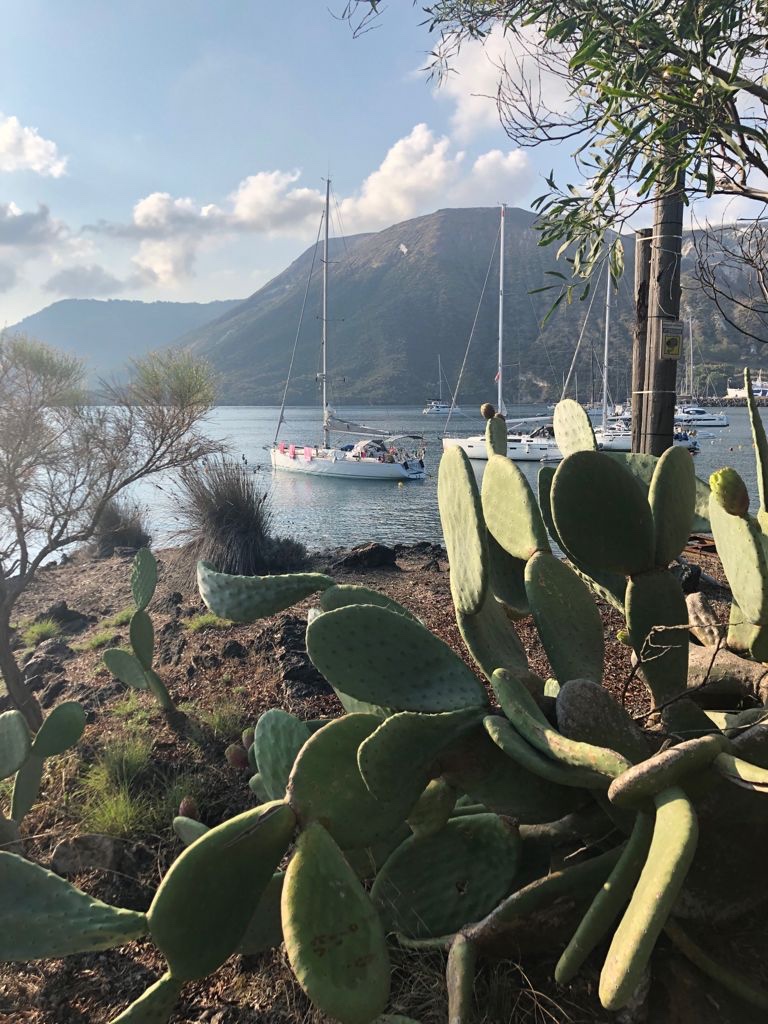 De volgende dag lopen we door het leuke dorpje; we kopen verse vis en nog wat andere lekkere zaken voor op de cobb vanavond. Na een koffietje gaan we op weg naar Filicudi, weer een mijl of 15, nu grotendeels op de motor. In de baai is geen boei vrij dus we ankeren in het hoekje aan lagerwal. Geen probleem met Max 10 knopen wind en zonder deining. Maar dan komt Massimo ons halen, er is toch 1 boei vrijgebleven en we verkassen dus. We borrelen aan de wal en barbecuen aan boord de heerlijke pesce pilota en zwaardvis die we op Salina kochten. Vroeg naar bed want morgen weer 64 mijl naar Palermo terug en dus weer vroeg op!