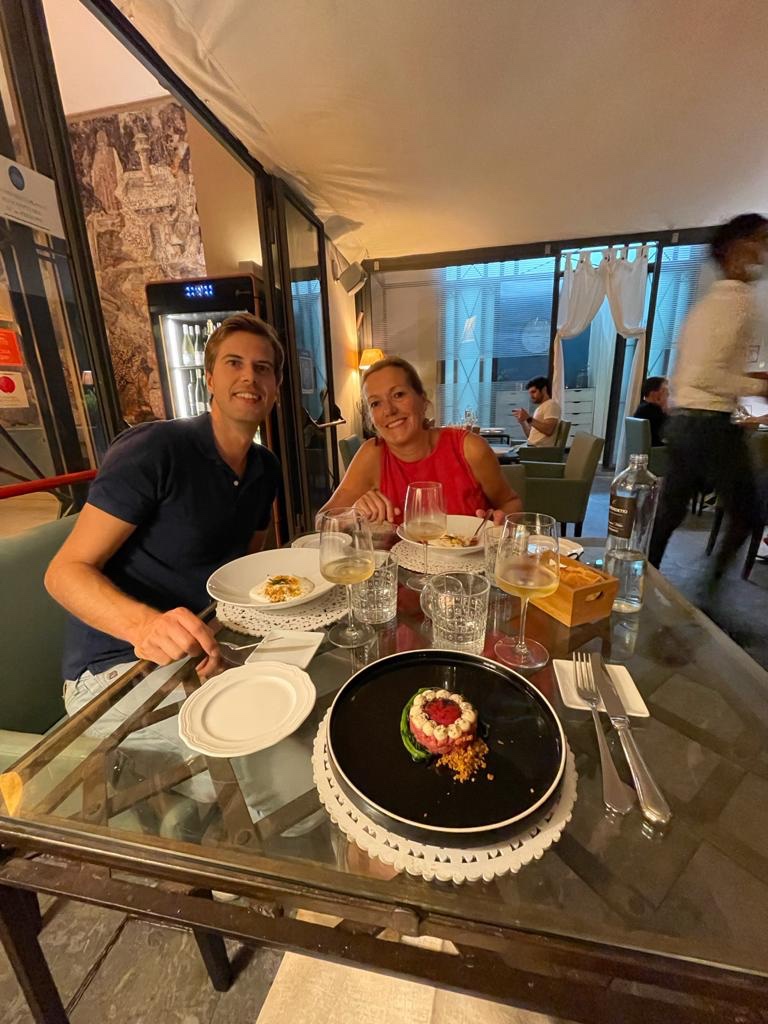 We gaan naar Locanda del Gusto waar we eerder geweest zijn op uitnodiging van Jan Willem en Patricia. Het is weer heel goed, mooie en bijzondere gerechten met Siciliaanse ingredienten. En natuurlijk een mooie Etna wijn erbij! We worden weer getrakteerd, Theo en Aukje bieden ons deze avond aan! Wat een verwennerij!