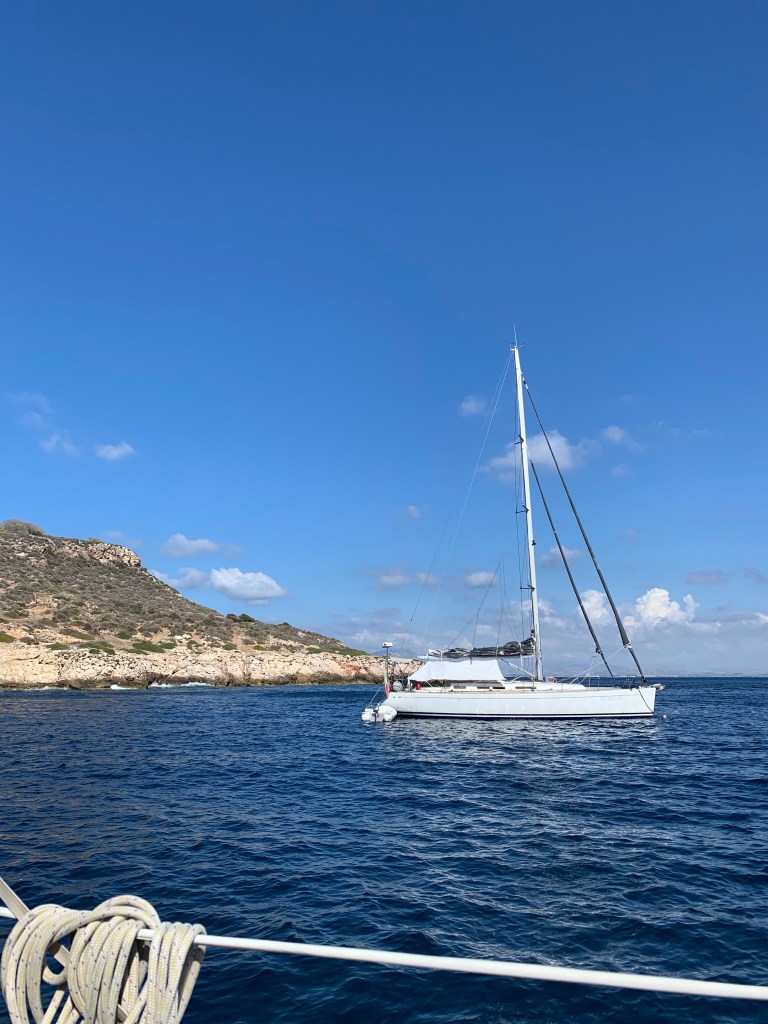 We varen op 12 september weg na een culturele en regenachtige dag in Palermo. Bij vertrek is er een windje van 10-12 knopen uit NW dus kan de spi eindelijk weer eens uit zijn hok. Dat is 3 jaar geleden voor het laatst gebeurd!