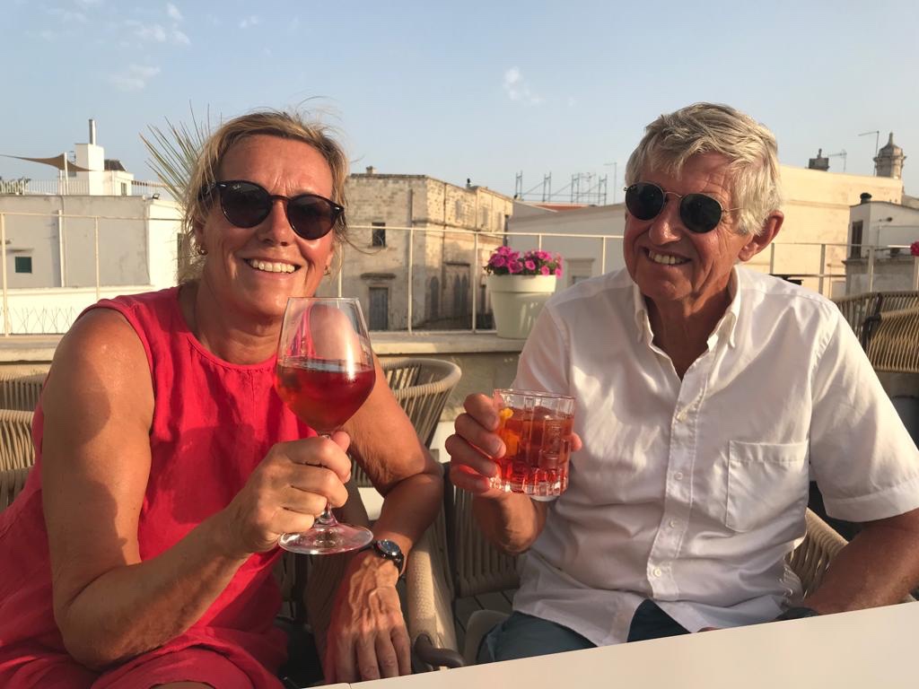 Omdat we vandaag 42 jaar getrouwd zijn hebben we een feestje vanavond. We borrelen op een dakterras van een hotel, waar een mooie bar is. Goede spritz, negroni en witte wijn met hapjes. Een 9 zou ik denken….