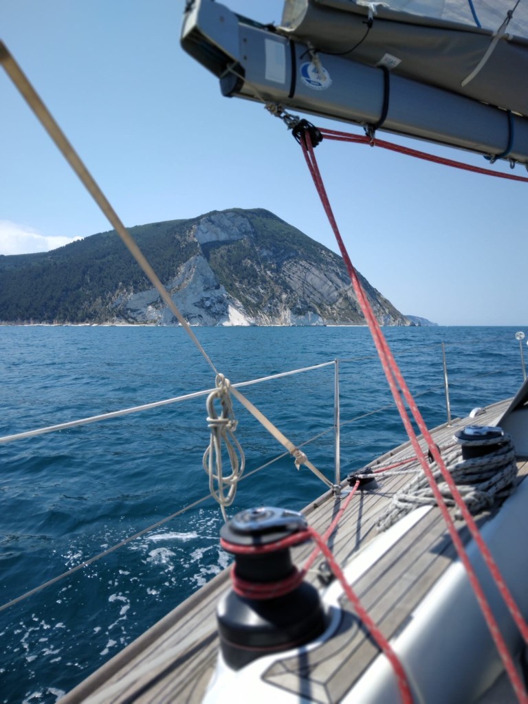 Op 4 juni gooien we los om 10 uur met het plan om naar Giulianova te varen, 25 mijl. Maar onderweg besluiten we door te varen want deze haven is niet goed gedocumenteeerd qua diepgang en de 2 steigers waar je kunt liggen geven onduidelijke boodschappen via de telefoon over de maximale diepgang. Ook gaat het de komende dagen meer waaien uit het noorden en dan hebben we wind tegen. Dus varen we 49 mijl naar Porto San Giorgio waarvan we de helft nog kunnen zeilen. Zoals we eerder meemaakten draait de wind in de loop van de dag steeds meer van NO naar Z door het zeewindeffect. Een groot deel van de middag heb je dan mooie halve wind.