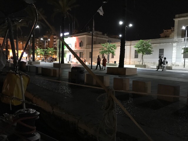 25-6: Zo hadden we het bedoeld! We zeilen 35 mijl halve wind naar Trani en halen eindelijk weer eens een boatspeed van boven de 9 knopen met 14 – 17 knopen ware wind. Bij Trani is het wel weer ondiep in de ingang maar gelukkig is dat pas zo achter de pieren zodat we van de golfjes aan lager wal geen last hebben. In Trani is er een vuurwerkshow om half elf in de avond. We zitten eerste rang in onze kuip, nadat we eerst lekker gegeten hebben bij restaurant Portanova.
