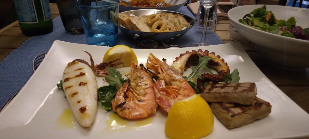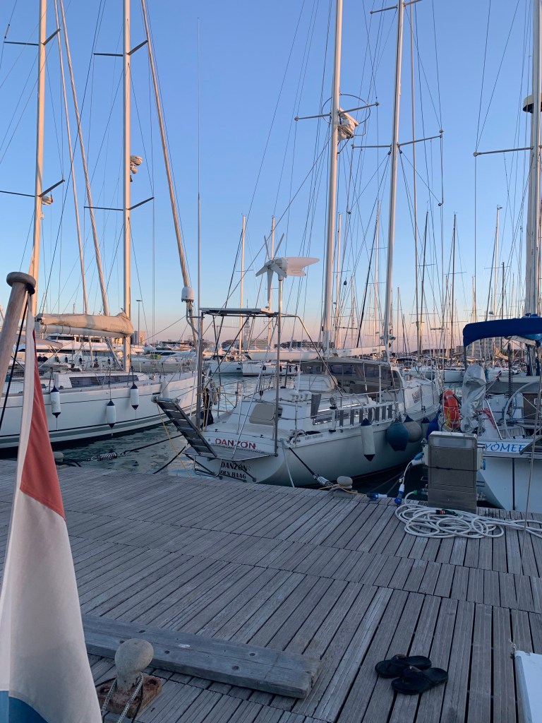 We blijven een dagje in de marina en gaan lekker eten in het heerlijke havenrestaurant.