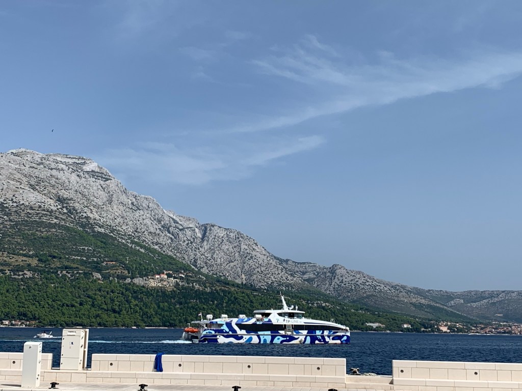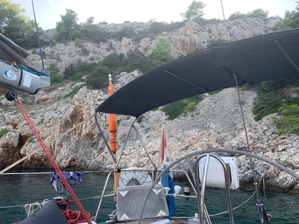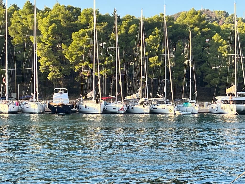 We moeten namelijk nog naar een haven om “in te klaren”. Waarom. zul je vragen , want Kroatië is toch een Schengen land sinds 1 januari 2023? Ja, maar je moet wel 2 vergunningen hebben om met je eigen jacht hier te mogen varen. De toeristenbelasting kun je online regelen, maar de navigation permit voor de boot niet. Op bijna ieder eiland is wel een haven met een havenmeester die dat kan doen, maar in Lastovo is dat geen gezellige plek (veerhaven). Als je dit niet direct doet op de dag dat je de Kroatische wateren binnenvaart, kun je een fikse boete verwachten. De kustwacht monitort je op de AIS. Het zoveelste verdienmodel van de Kroatische overheid…..