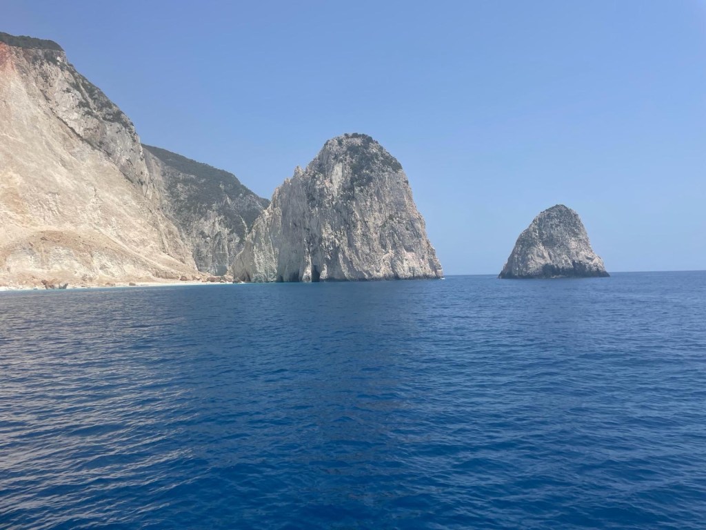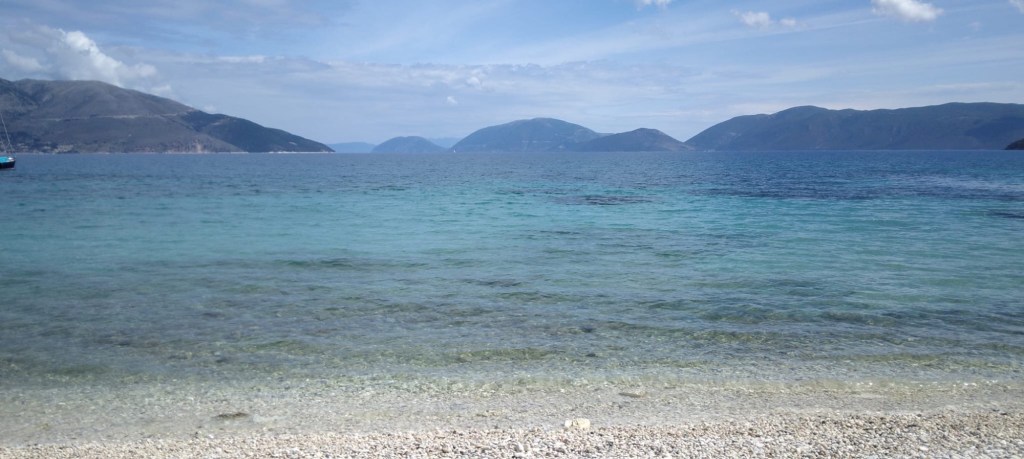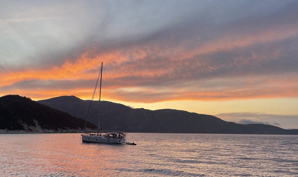 De wind is minder geworden. Er staat nog wel deining maar we gaan zeilen! Om de zuidpunt van Ithaka heen zeilen we naar Keffalonia om te ankeren in de baai Ormos Antisamos.