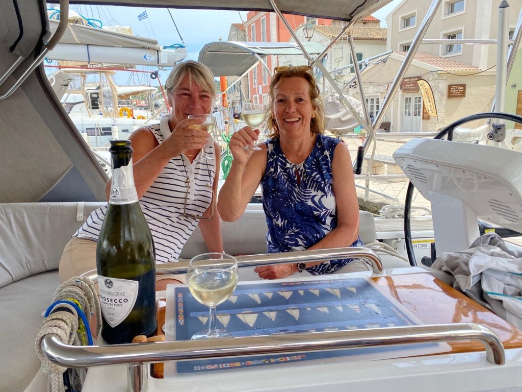 Pieter en Brigitte komen iets later aan en krijgen een plek aan dezelfde steiger, gezellig. ‘s Avonds eten we gezellig bij Pieter en Brigitte aan boord